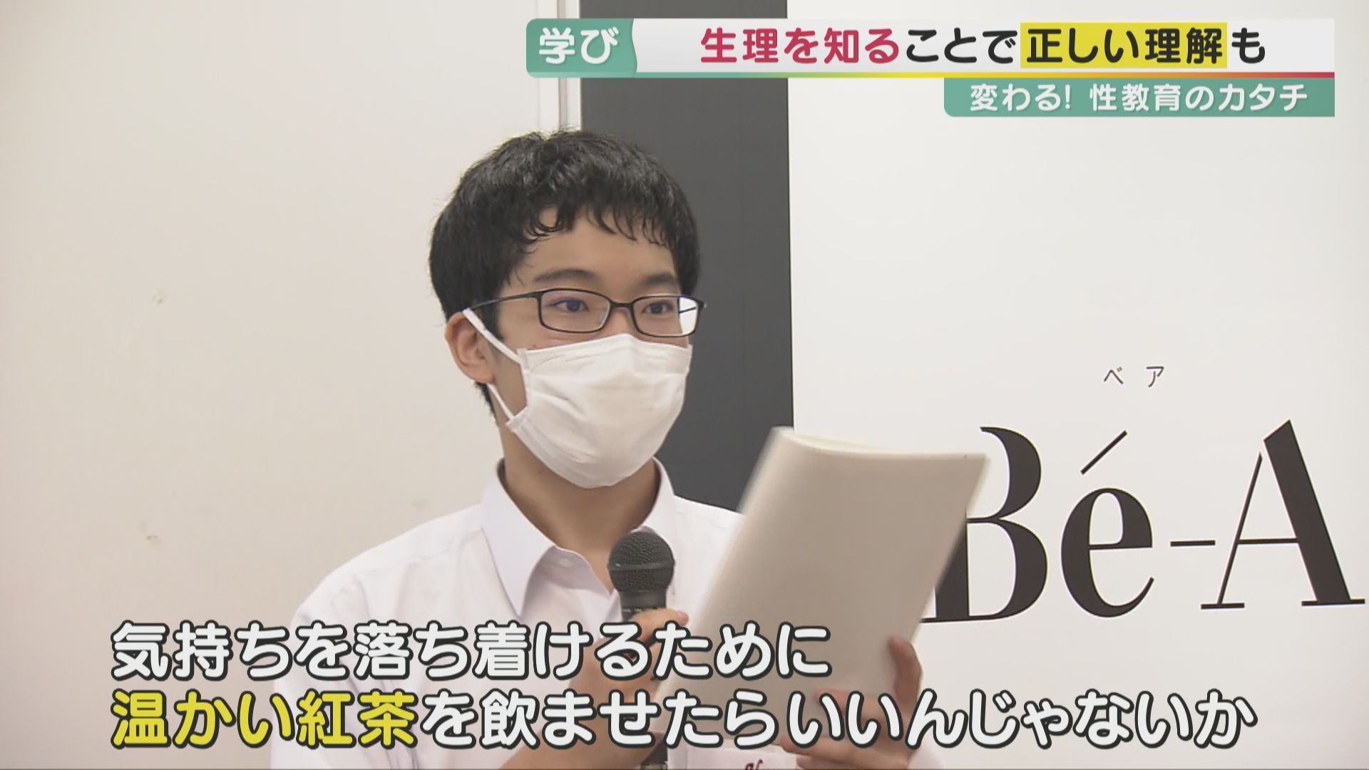 女性の生理について学んだ男子生徒たち。授業の終わりに、それぞれ感想を発表しました。