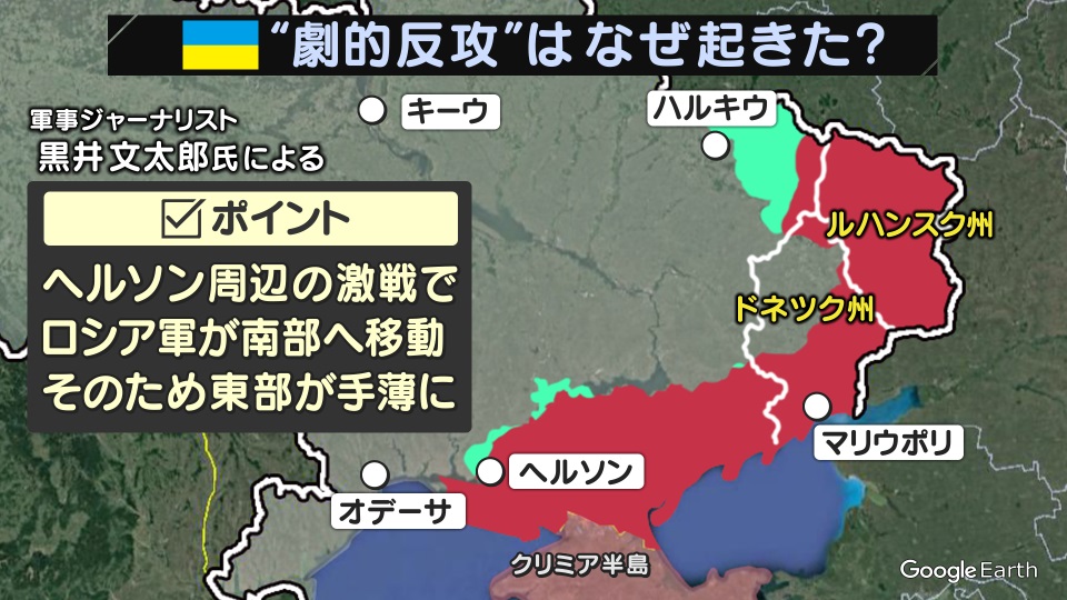 【専門家が解説】ウクライナ劇的反攻の背景には何が? 約8000平方キロの領土を奪還 ロシアが後退するのは「兵員不足」が要因? ロシア軍が南部へ移動し東部が手薄に そこを一気にウクライナ軍が (写真ギャラリー 6/8) 記事にもどる
