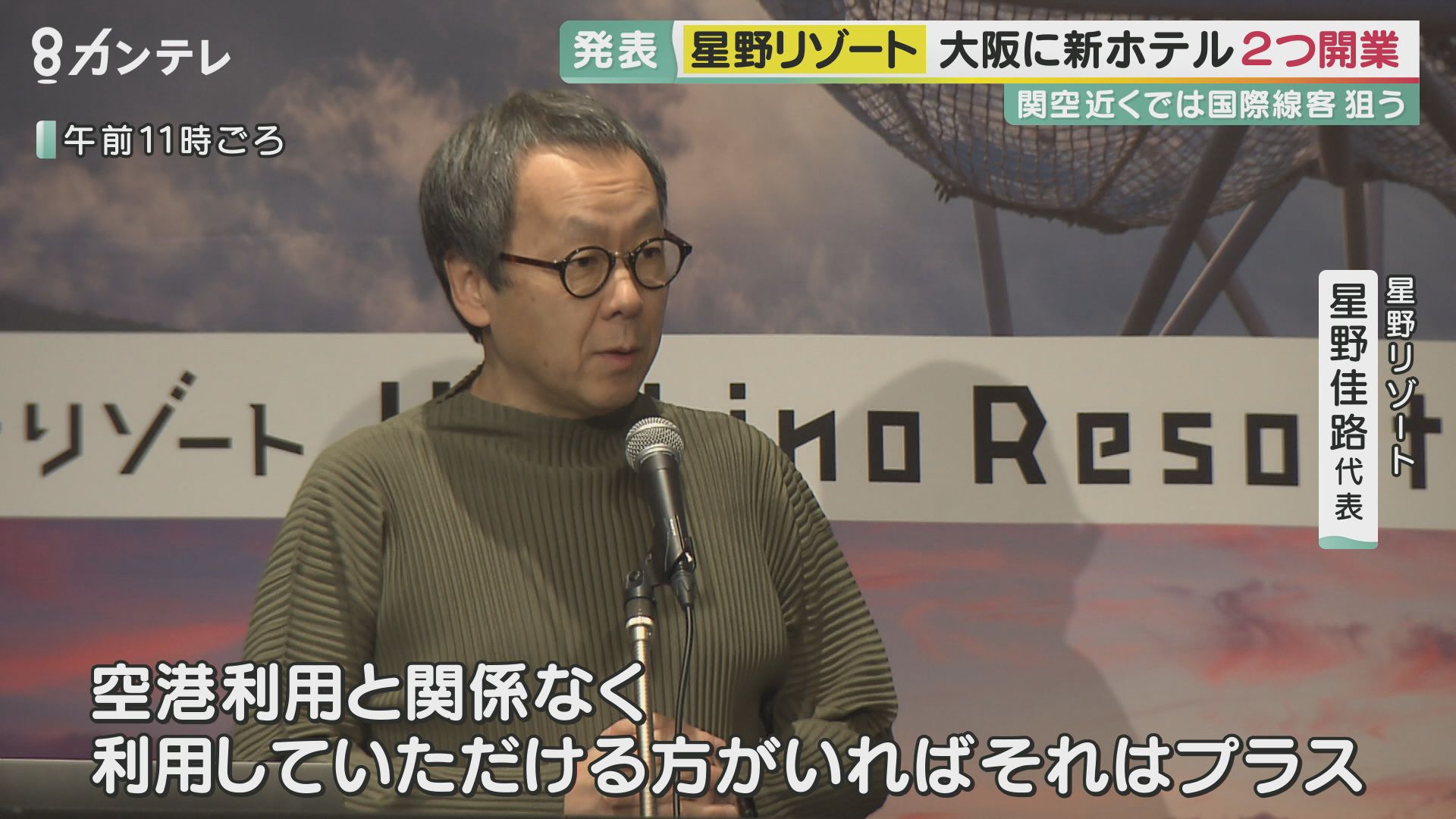 星野佳路代表は9月13日の会見で、泉佐野市などに2つのホテルを開業すると発表しました。