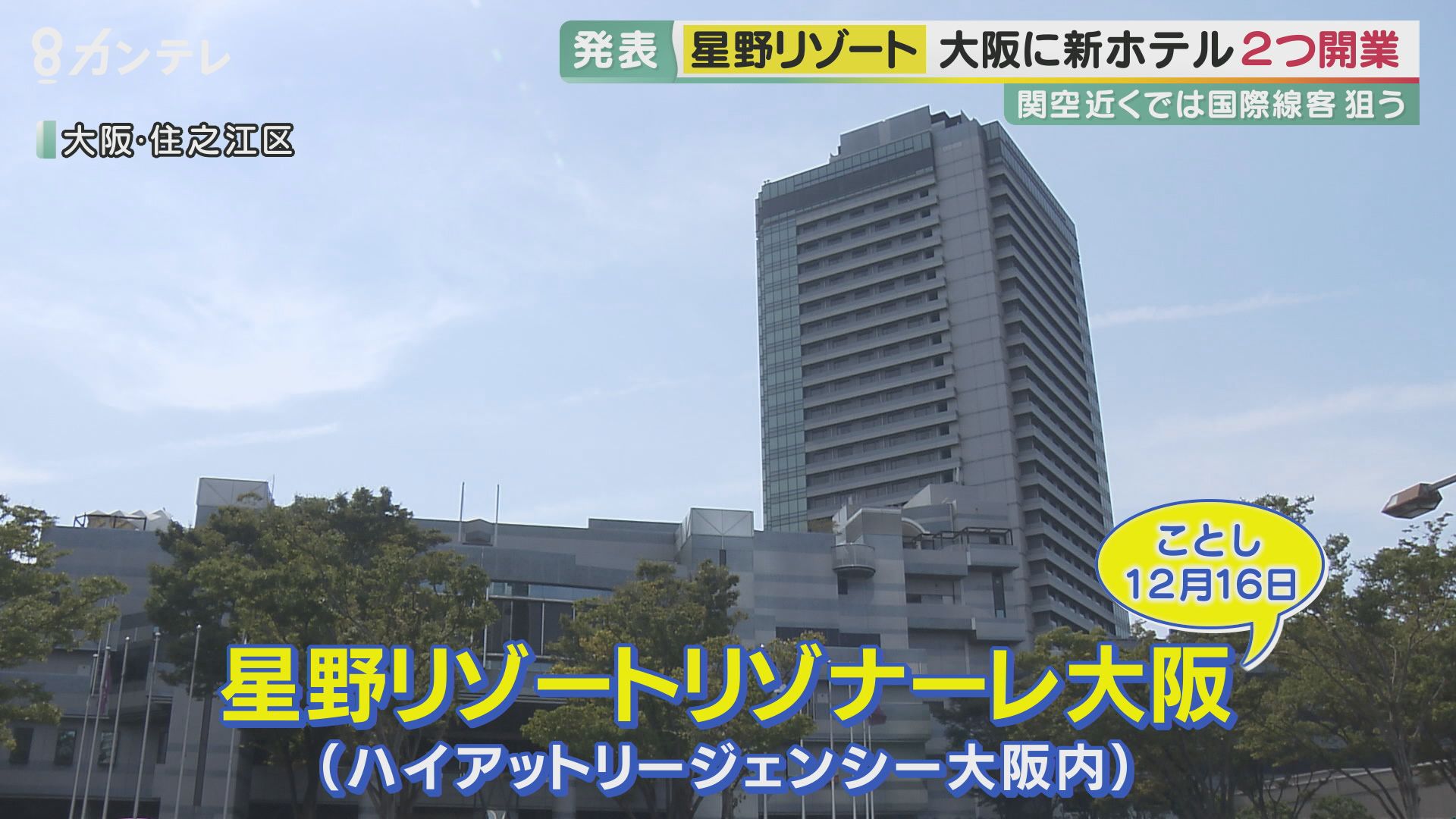 また、大阪市の「ハイアットリージェンシー大阪」の4フロアを改装し、12月16日に「星野リゾートリゾナーレ大阪(ハイアットリージェンシー大阪内)」を開業します。