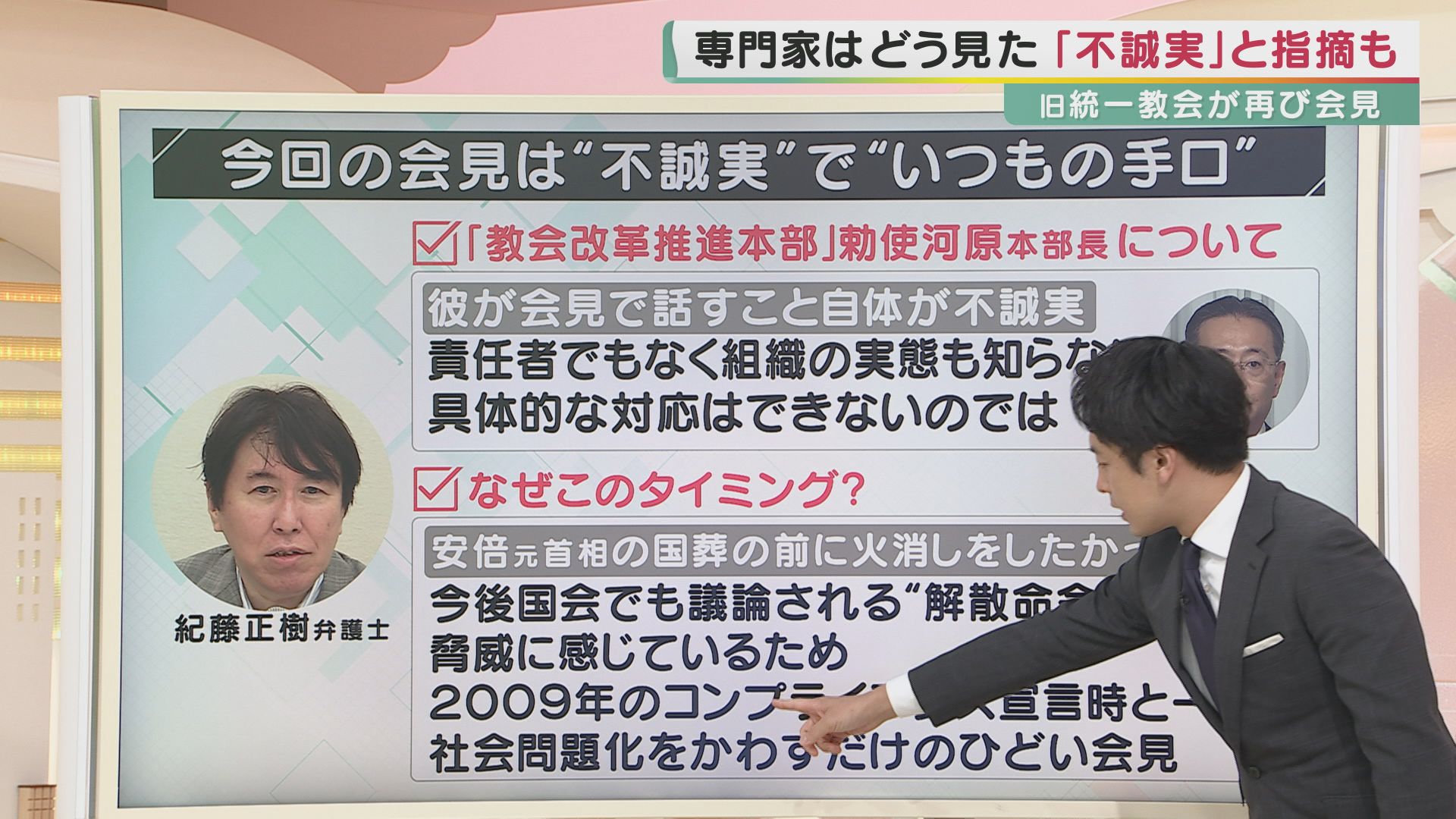 9月22日、旧統一教会が会見を行い、「教会改革推進本部」を設置して「過度な献金」などがないように指導を徹底していくなどと説明しました。会見について、旧統一教会の問題に詳しい紀藤正樹弁護士の見解です。