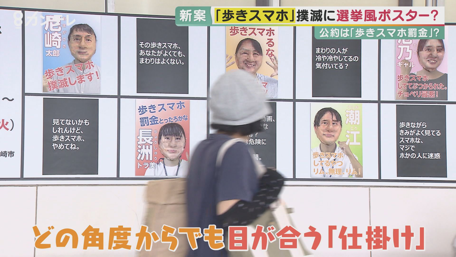 “選挙風ポスター”で歩きスマホに警鐘 どの角度からでも目が合う? 尼崎市と大阪大学が「だまし絵」使ったユニークな試み