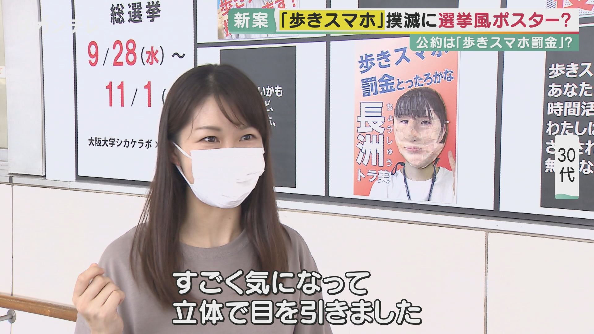 “選挙風ポスター”で歩きスマホに警鐘 どの角度からでも目が合う? 尼崎市と大阪大学が「だまし絵」使ったユニークな試み