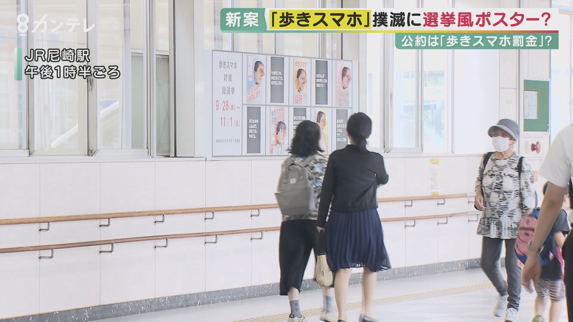 “選挙風ポスター”で歩きスマホに警鐘 どの角度からでも目が合う? 尼崎市と大阪大学が「だまし絵」使ったユニークな試み