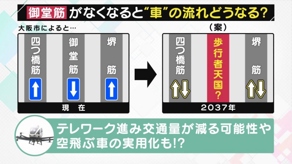 御堂筋の側道が4日から閉鎖 広い歩道で「シャンゼリゼ通り」に? 大阪のメインストリートで社会実験が始まる 車の利用者からは心配の声も いずれは「完全な歩行者天国」に…空飛ぶ車までを見込んだ“15年後”の構想は実現するか