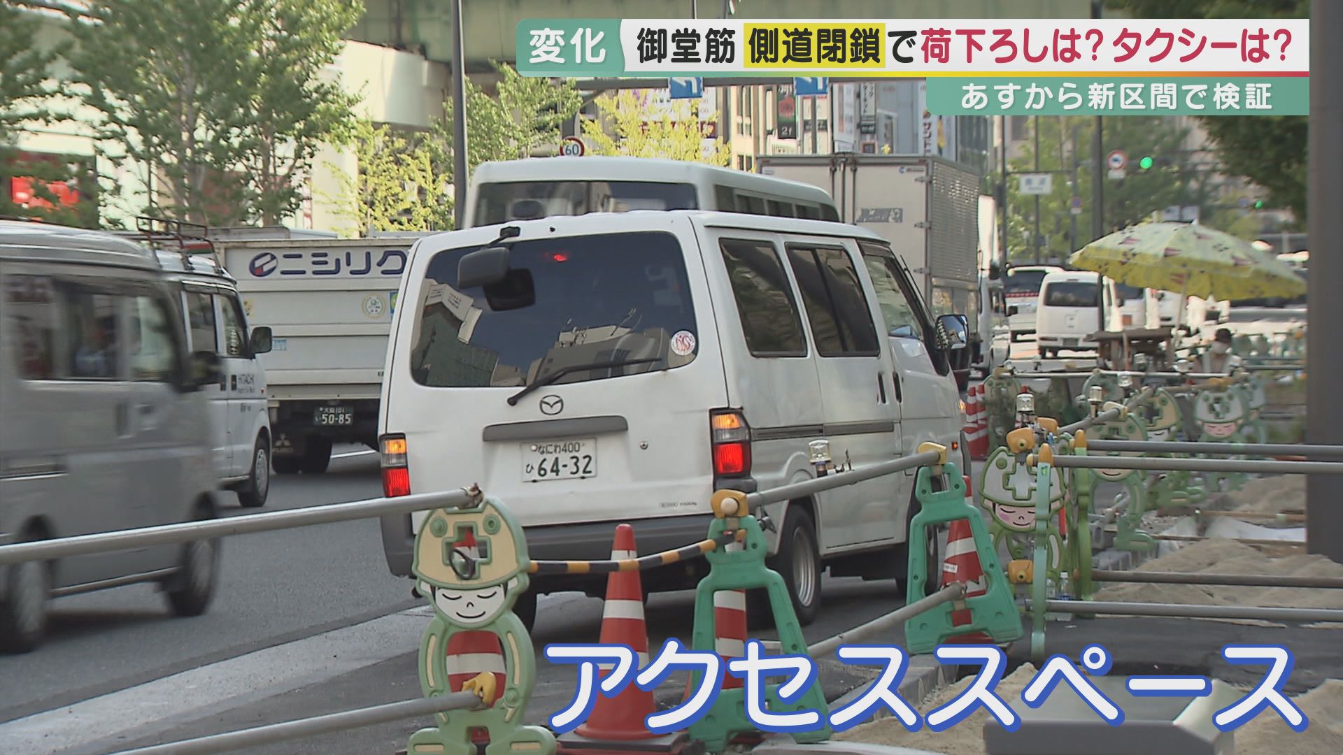 御堂筋の側道が4日から閉鎖 広い歩道で「シャンゼリゼ通り」に? 大阪のメインストリートで社会実験が始まる 車の利用者からは心配の声も いずれは「完全な歩行者天国」に…空飛ぶ車までを見込んだ“15年後”の構想は実現するか