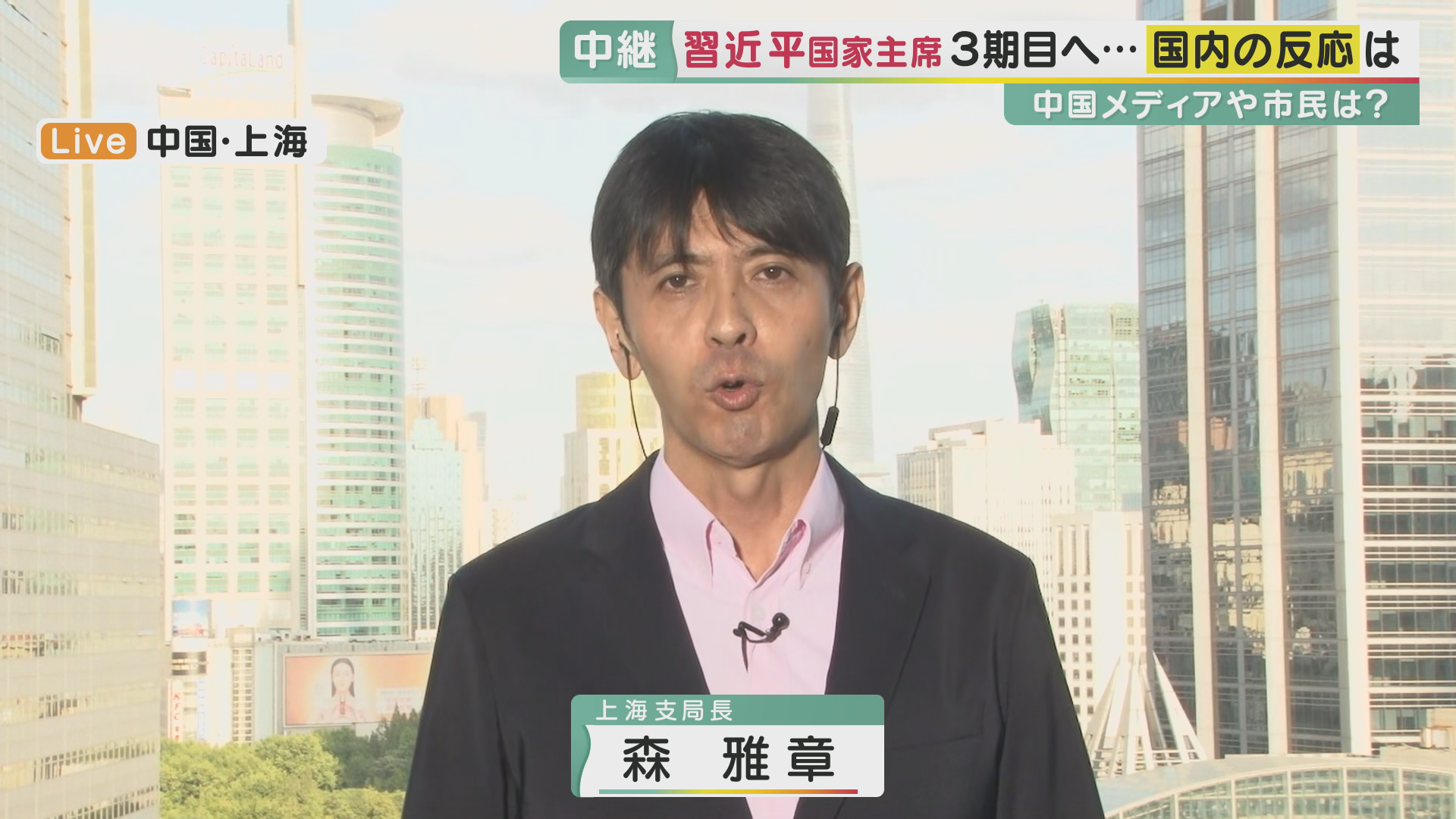 「テレビや新聞といった各メディアは、党大会のことを一斉に報じています。中国共産党の機関紙といわれる『人民日報』は一面から大きく報じています。習近平国家主席が演説で語った重要な言葉を、専門家らが4ページにわたって解説し、『社会主義制度の顕著な優位性が世界に示された』と伝えています」