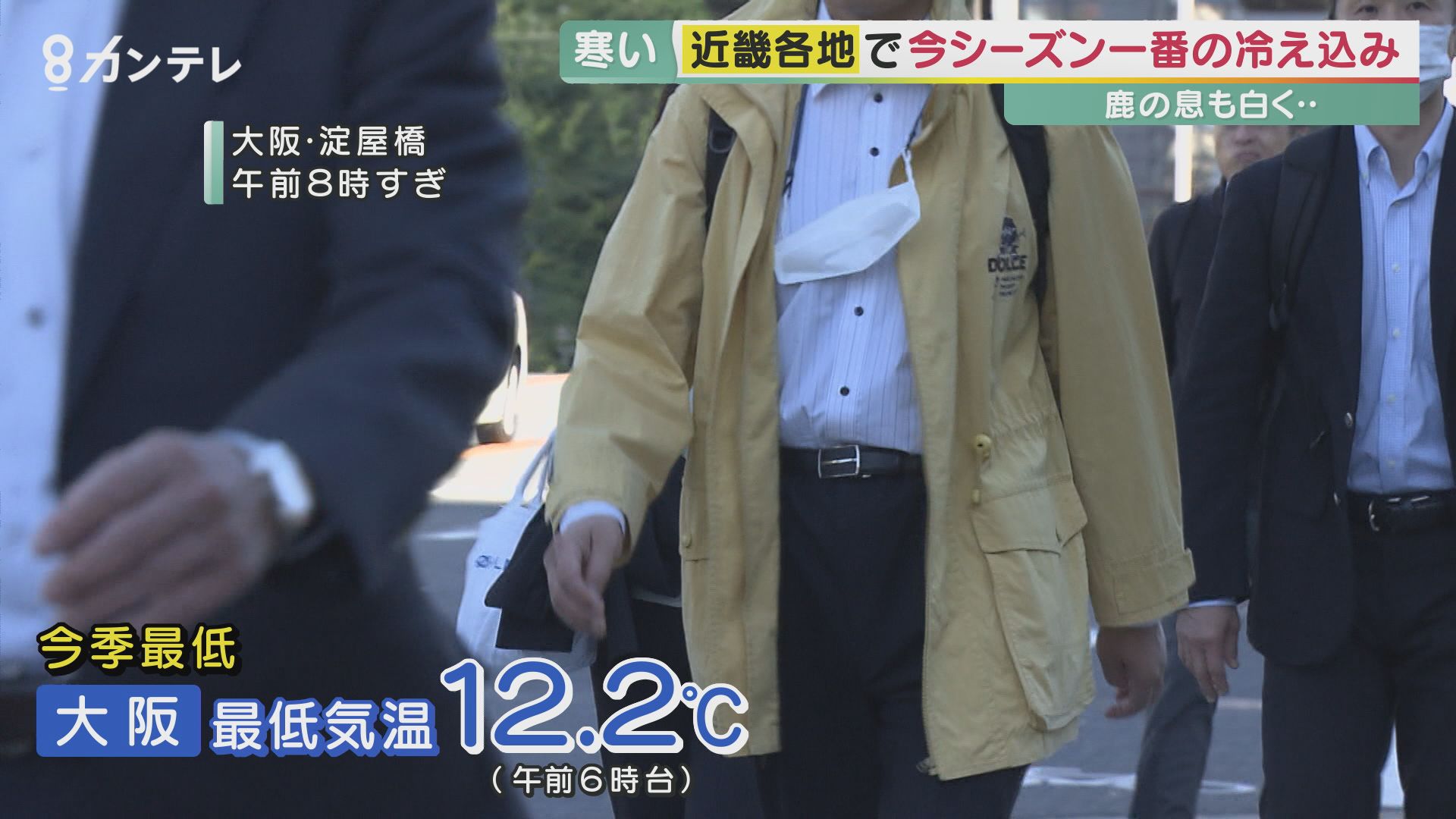 木々が色づき始めた奈良公園。鹿の吐く息も白くなった10月19日の朝、奈良では最低気温9.5度と、今シーズン一番の冷え込みに。大阪市内でも、11月上旬並みの12.2度と今シーズンの最低気温を更新しました。