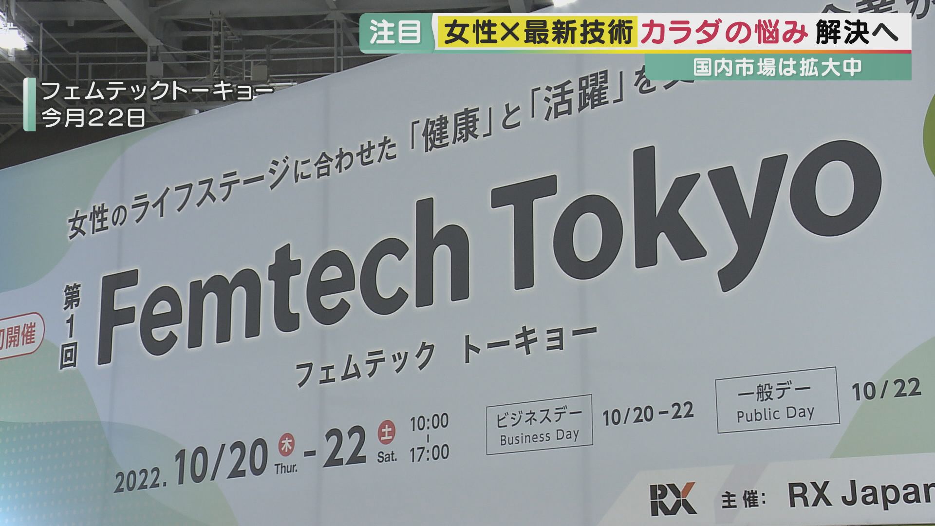 10月20~22日に開催された「フェムテックトーキョー」は、最新商品を集めた展示会。主に国内企業175社が参加し、「生理」や「更年期」など、カテゴリー別に商品やサービスを紹介します。