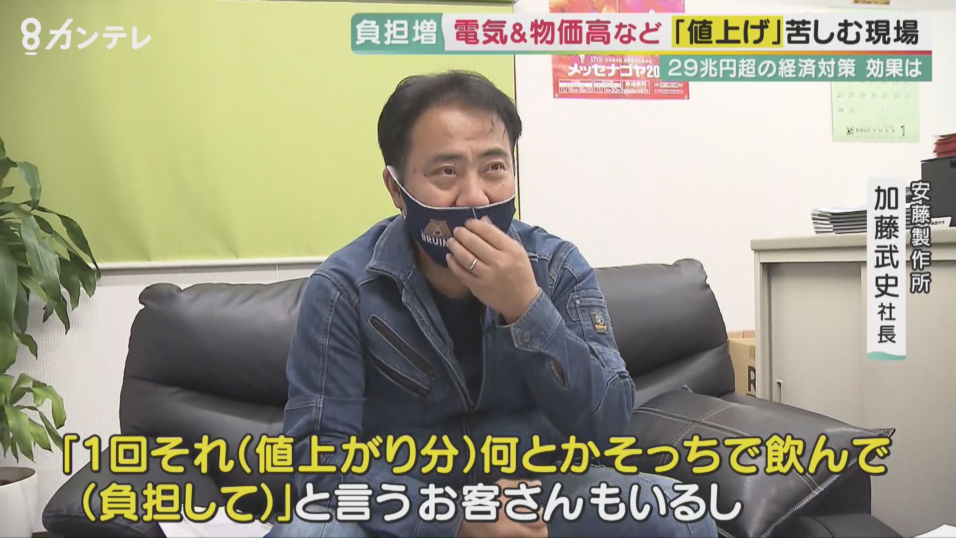 「材料の値上げの(通知が)各社色々来るんですけど。最初、5、60円上がるっていう話なんですけど、最後は1000円近く上がりました。『1回、値上がり分なんとかそっちで飲んで(負担して)よ』って言うお客さんもいるし、『その代わり、2回目上がったとき2回分上げますよ』ってそういう交渉になってきている。今後どうするのって言ったら『お客さんからすんませんけど材料支給(用意)して下さい』っていうのが最後かなっていつも思う」