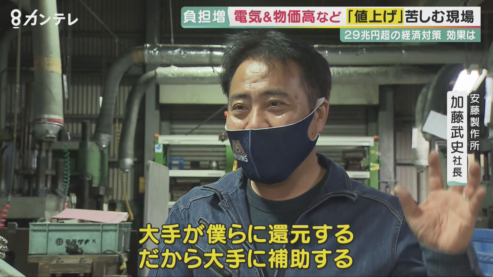 「よく景気対策をしたというが大手向け。僕らに還元されたかというとなかなか感じないのが実情なんで。大手が僕らに還元する、だから大手に補助する、そういうシステムにしていただいたら僕らも助かる」
