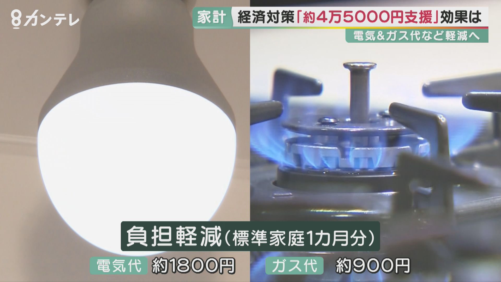 例えば、標準的な家庭で、電気代はひと月およそ1800円、ガス代はおよそ900円、負担が軽減されます。