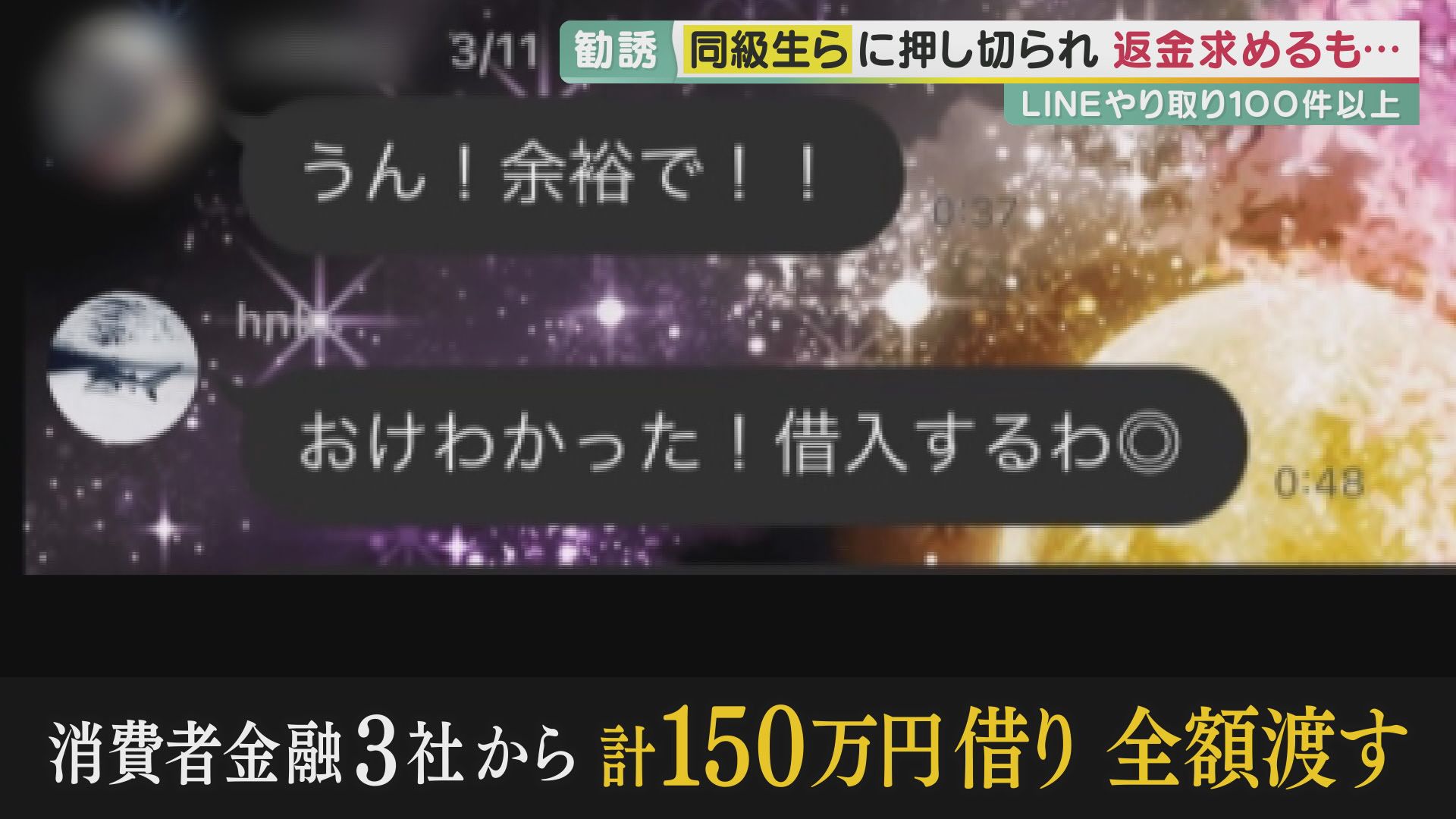 穂野香さんは悩みましたが、350万円ほどの奨学金の返済が始まろうとしていたこともあり、勧誘してきた同級生たちに押し切られ、消費者金融3社から「引っ越し」と理由を作って計150万円を借り、全額を渡しました。