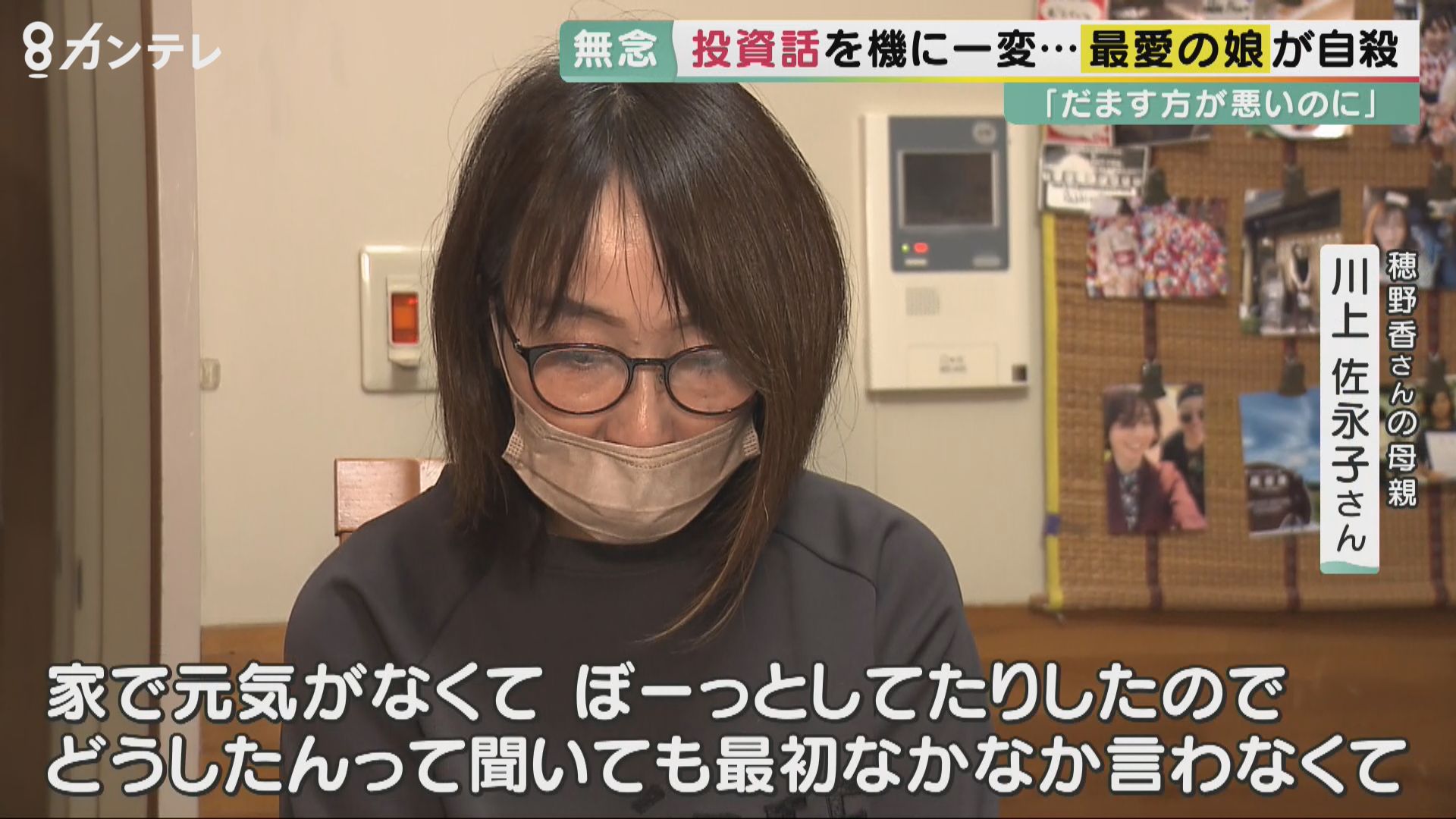 誰よりも真面目で責任感が強く、佐永子さんにとっても自慢の娘でした。そんな彼女が、投資話をきっかけに一変したのです。
