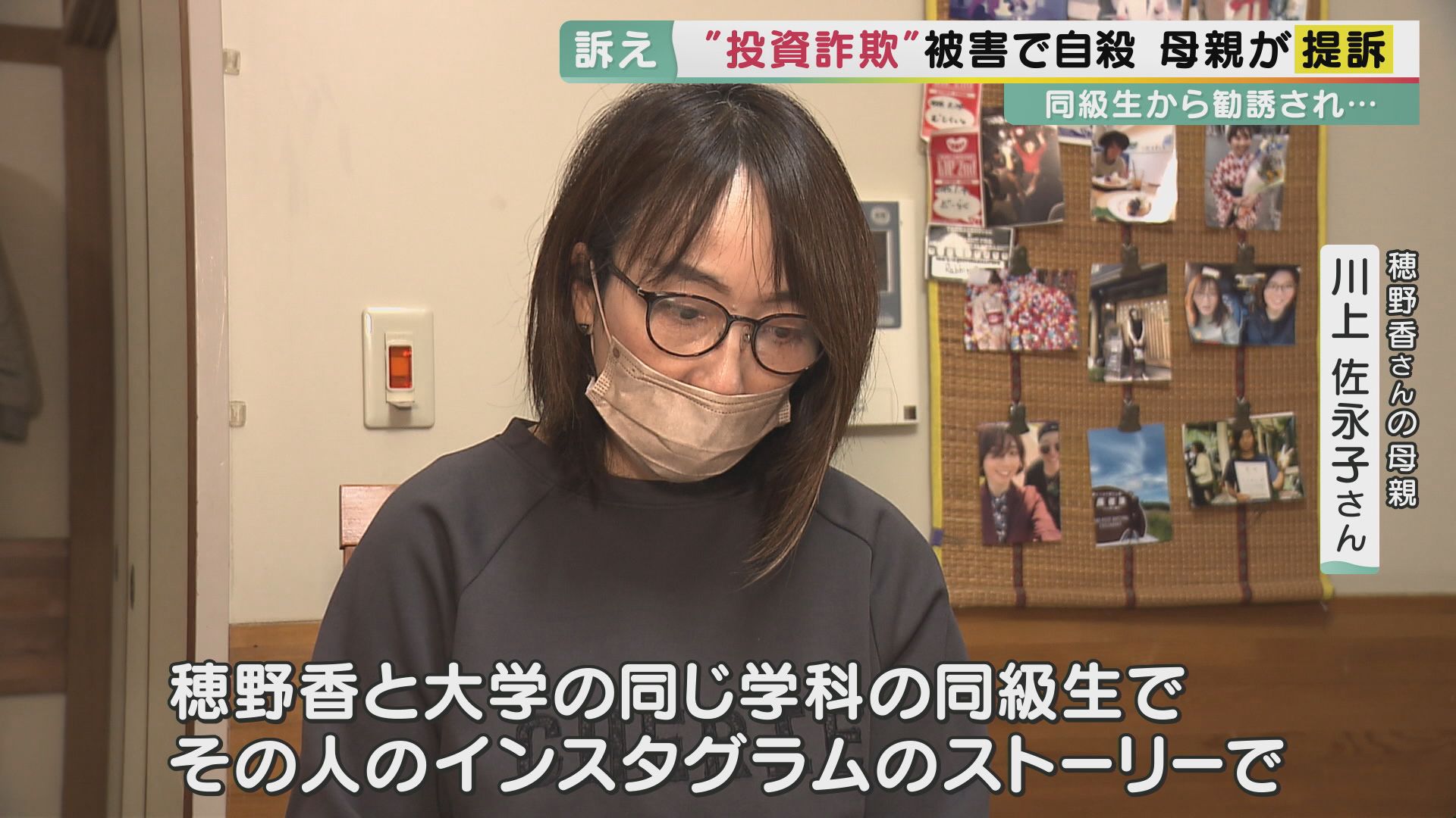 「穂野香と大学の同じ学科の同級生で、その人のインスタグラムのストーリーで『投資に興味がある人』みたいなアンケート、イエスとノーみたいなボタン押すところで、軽い気持ちでイエスと押したのがきっかけで、『早くやられることをお勧めします』って。友達を信用したというところだと思います」