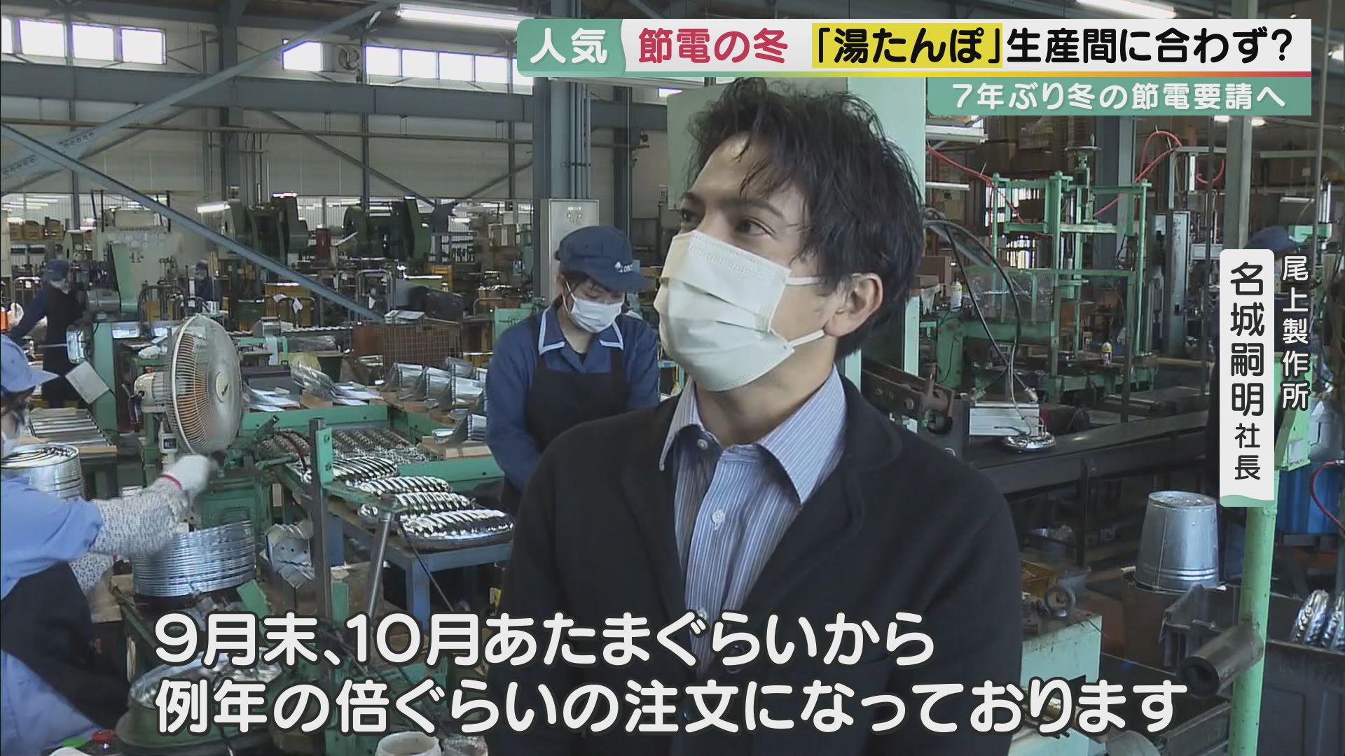 「間に合ってないです。去年はアウトドアブームですごく湯たんぽ作ってたんですけど、今年に関しては省エネ、節電ということで湯たんぽがさらに出ている。予想はしてたんです。増産計画を立ててたんですけど、それを上回る数が出てしまって追い付いていない感じ」
