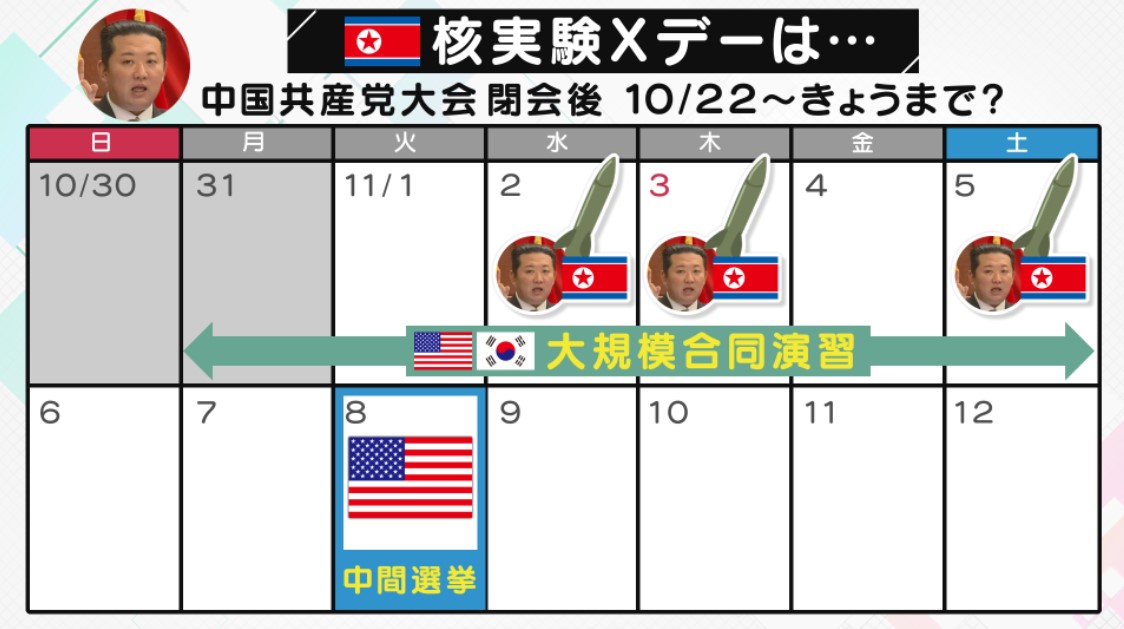 11月2~5日にかけてミサイルを乱発した北朝鮮。5年ぶり7回目の核実験は、アメリカ中間選挙の11月8日までに実施される可能性が高く、エックスデーは「11月7日」だと言われていました。しかし現在のところ、その動きはみられていません。