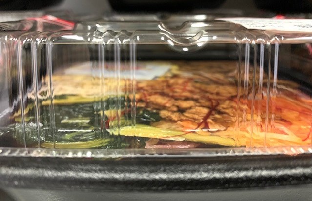 おいしそうなビビンバ丼も、中身は紙。リアルに見えるよう、綿密に計算して作られています。