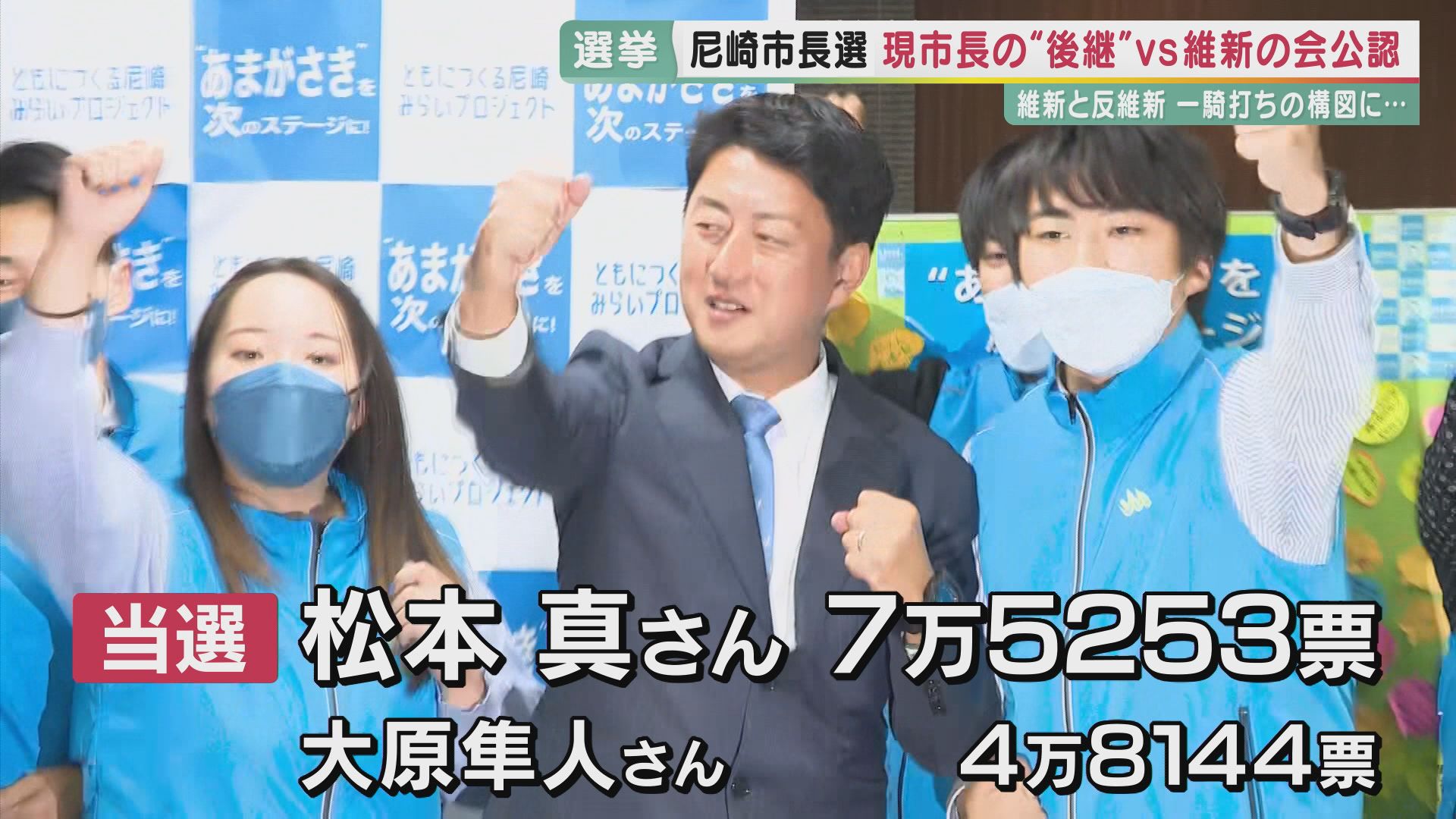現職・稲村和美市長の「後継候補」として、前・尼崎市教育長の松本真(まつもと しん)さんが当選を果たしました。