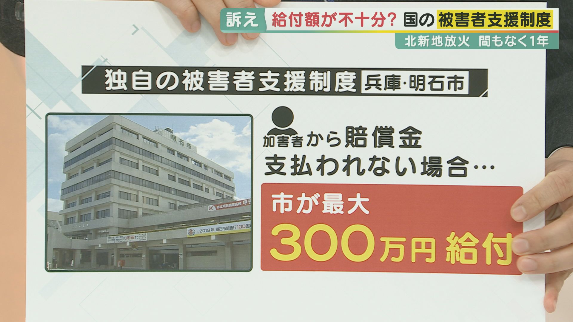 兵庫県明石市では、加害者から賠償金が支払われない場合、市が代わりに最大300万円を給付します。