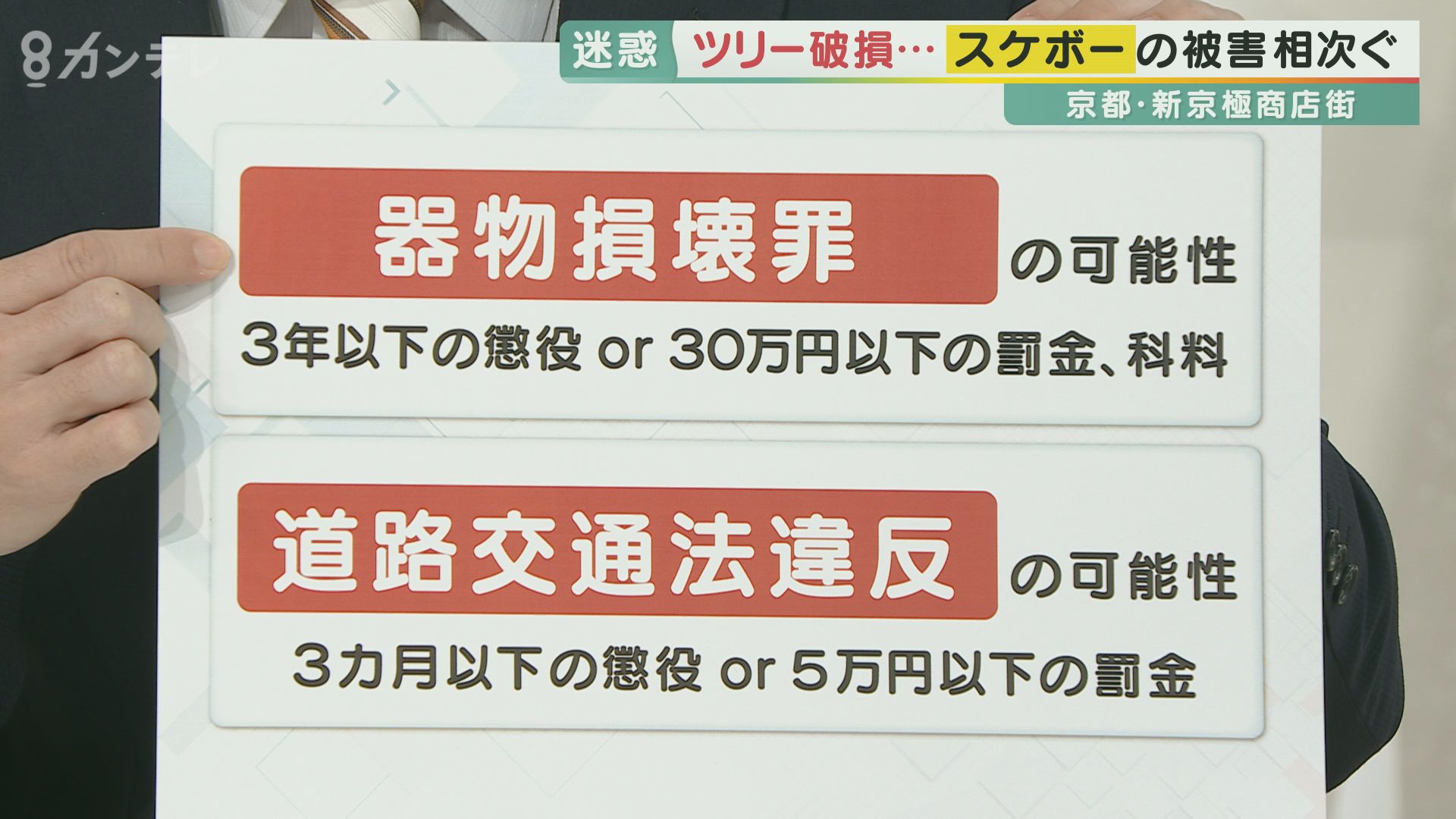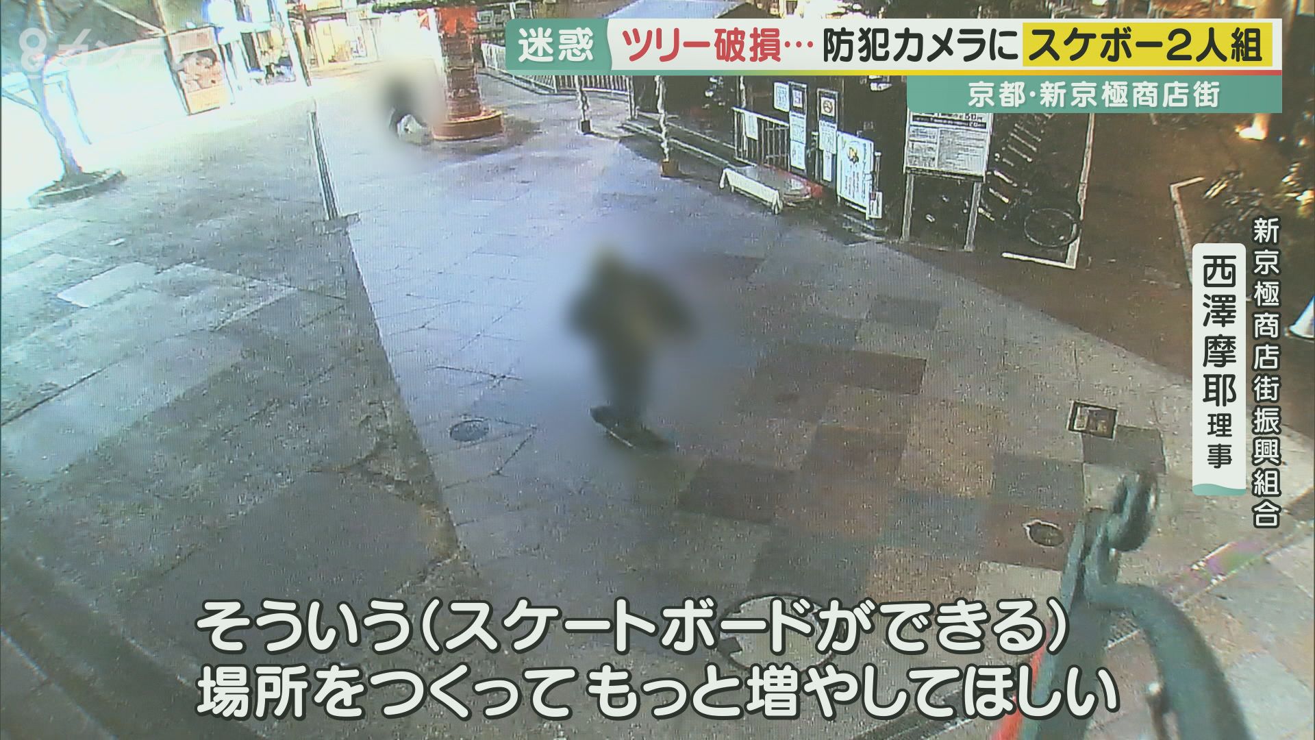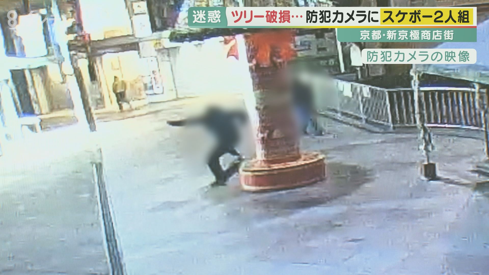 スケボー2人組が商店街のクリスマスツリーを破壊…防犯カメラに一部始終 修理には100万円が必要 商店街は被害届を出す構え マナー違反の若者が問われる罪は