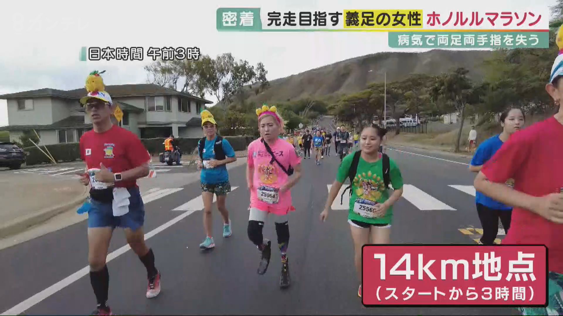 “電撃性紫斑病”の女性義足ランナーがホノルルマラソン駆け抜ける! 両足と両手指を失った母と伴走する娘2人 サポーターに囲まれ「栄光の金メダル」