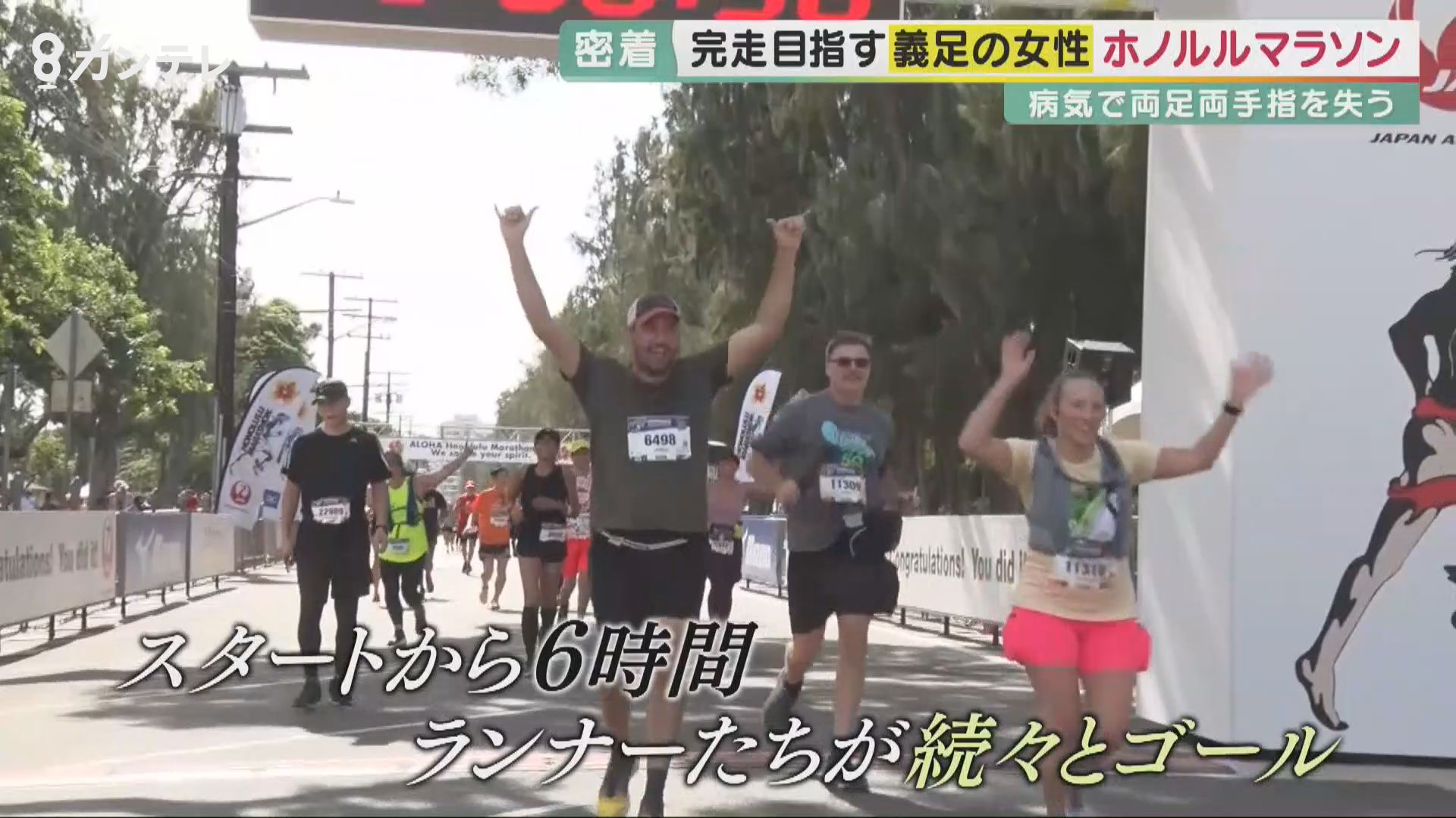 “電撃性紫斑病”の女性義足ランナーがホノルルマラソン駆け抜ける! 両足と両手指を失った母と伴走する娘2人 サポーターに囲まれ「栄光の金メダル」