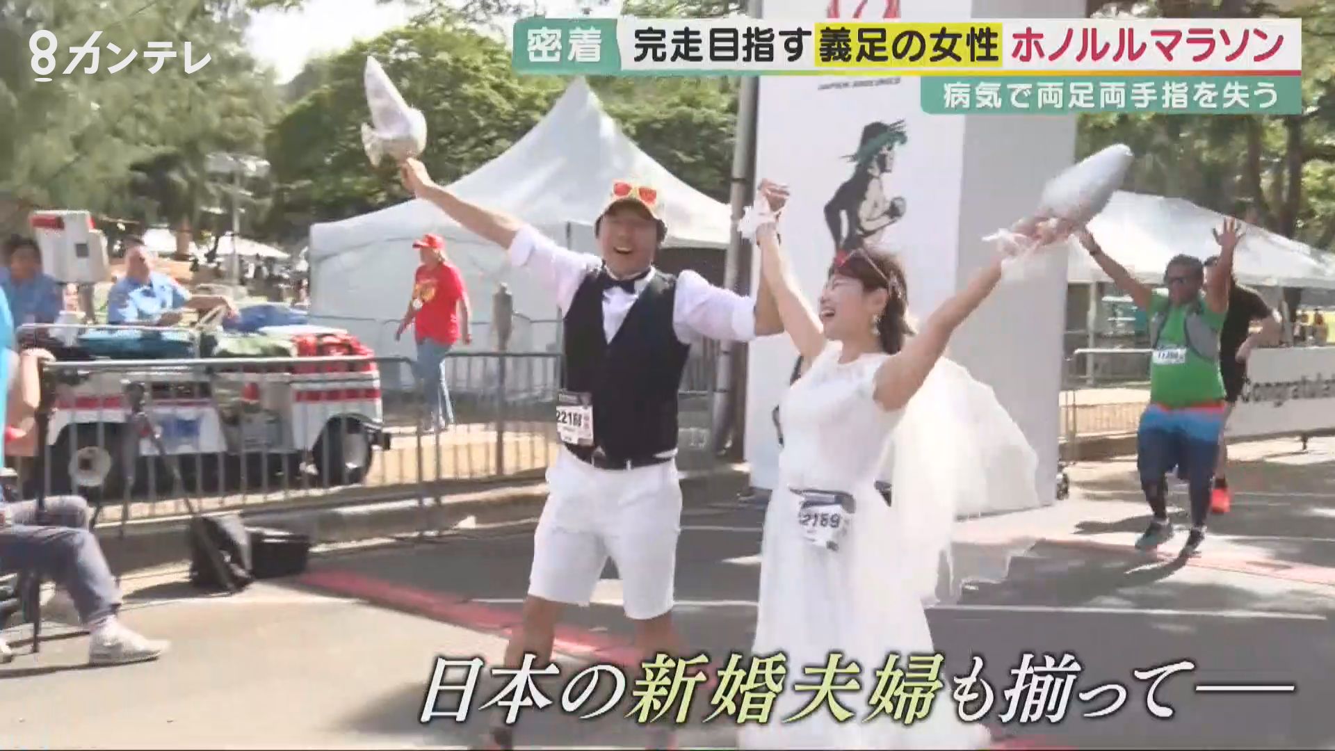 “電撃性紫斑病”の女性義足ランナーがホノルルマラソン駆け抜ける! 両足と両手指を失った母と伴走する娘2人 サポーターに囲まれ「栄光の金メダル」