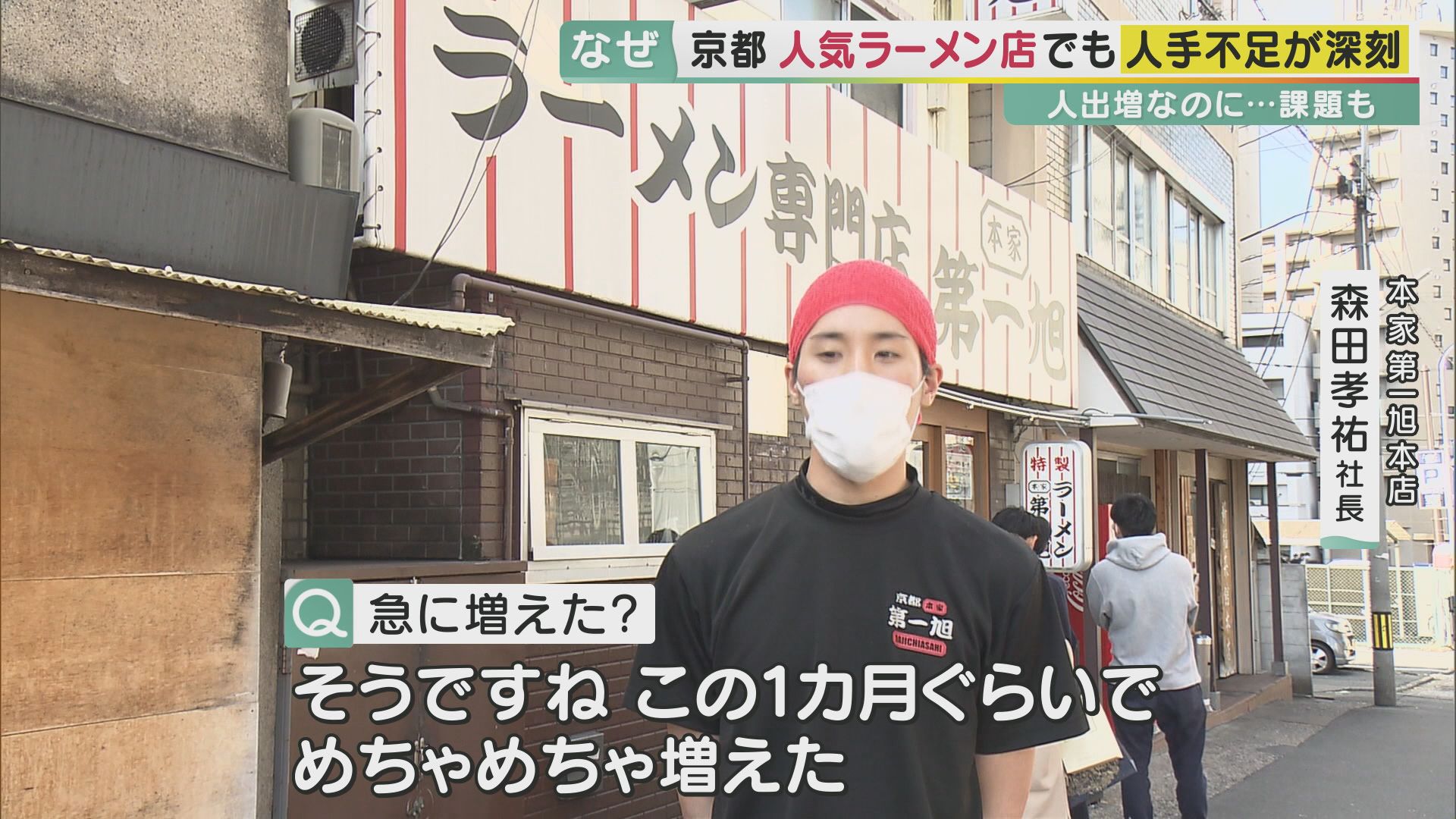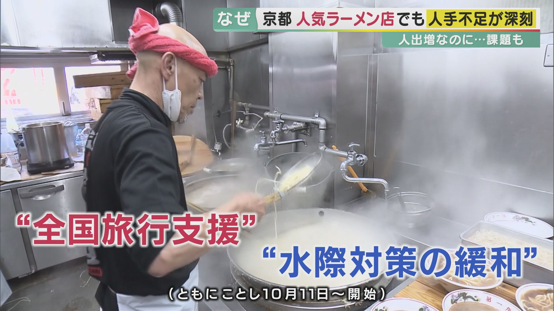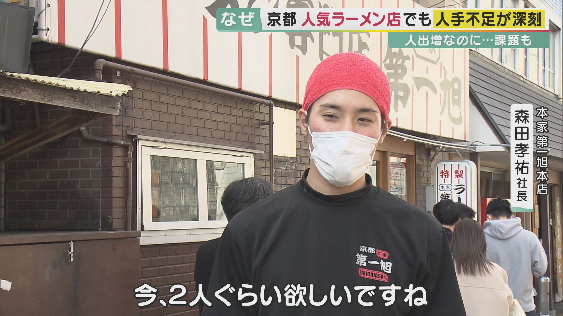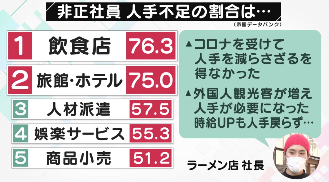 今回取材した京都のラーメン店は、「コロナを受けて人手を減らさざるを得なかったが、最近は外国人観光客が増えて人手が必要になった。時給を上げて募集しているが、人手は戻っていない」という状況だそうです。