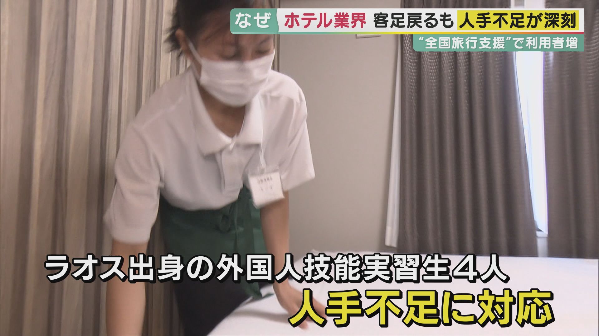 このホテルでは、ラオスからやって来た外国人技能実習生4人を迎え入れ、清掃業務など人手不足に対応しています。
