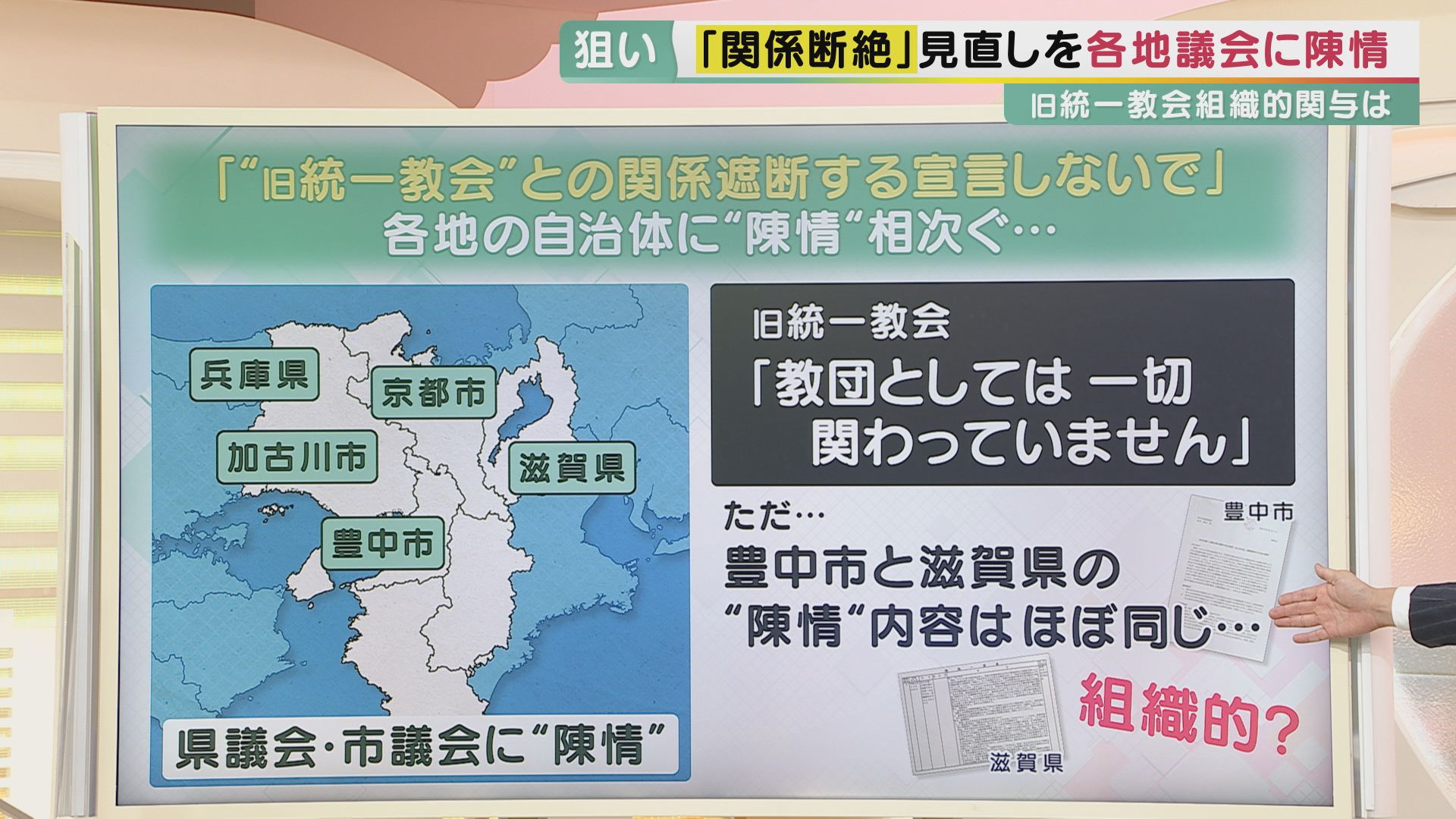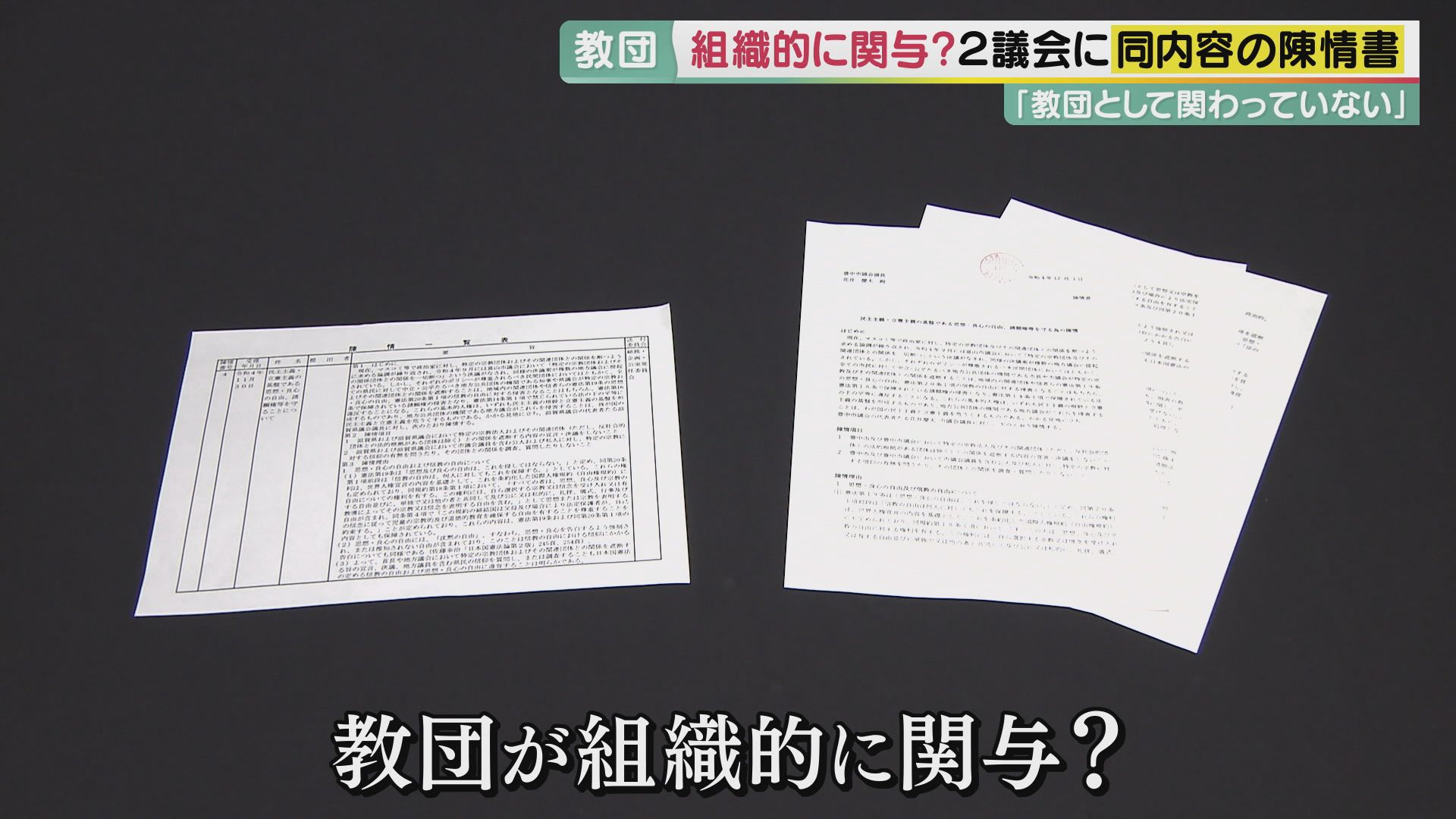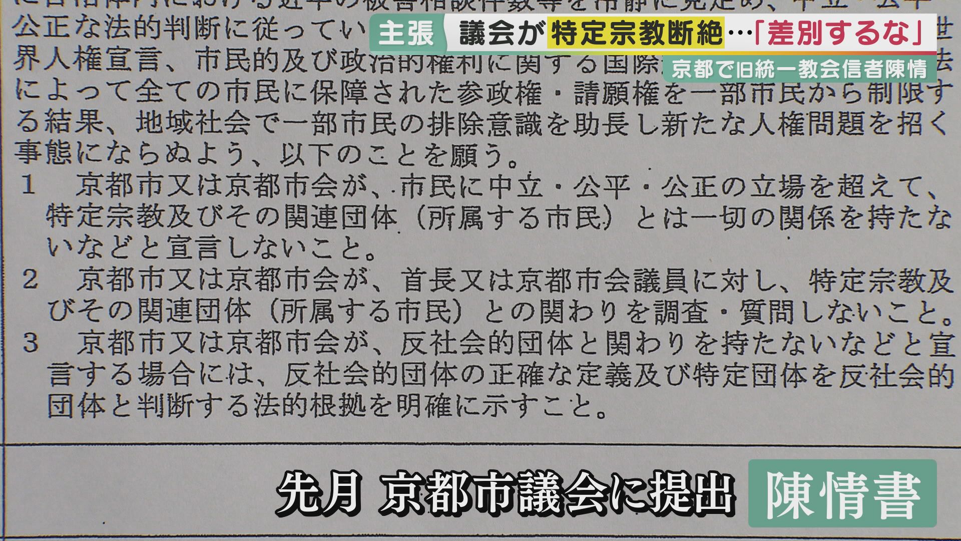 「差別するな」"旧統一教会"信者が議会に陳情書…全国でも関係者が同様の動き その“狙い”とは? 別議会なのに『同じ文面』も 紀藤弁護士「組織的関与。“解散命令”けん制か」 (写真ギャラリー 4/12) 記事にもどる