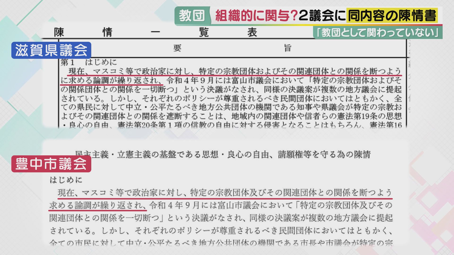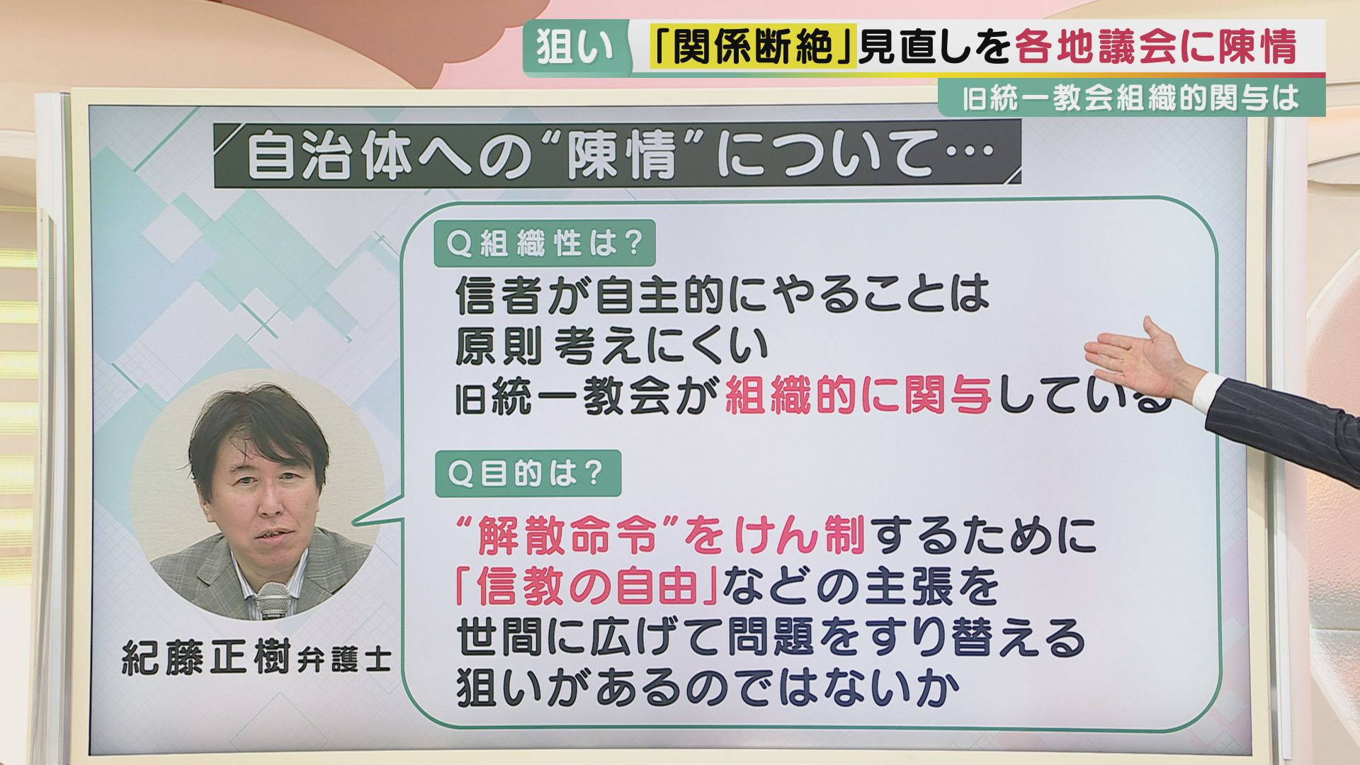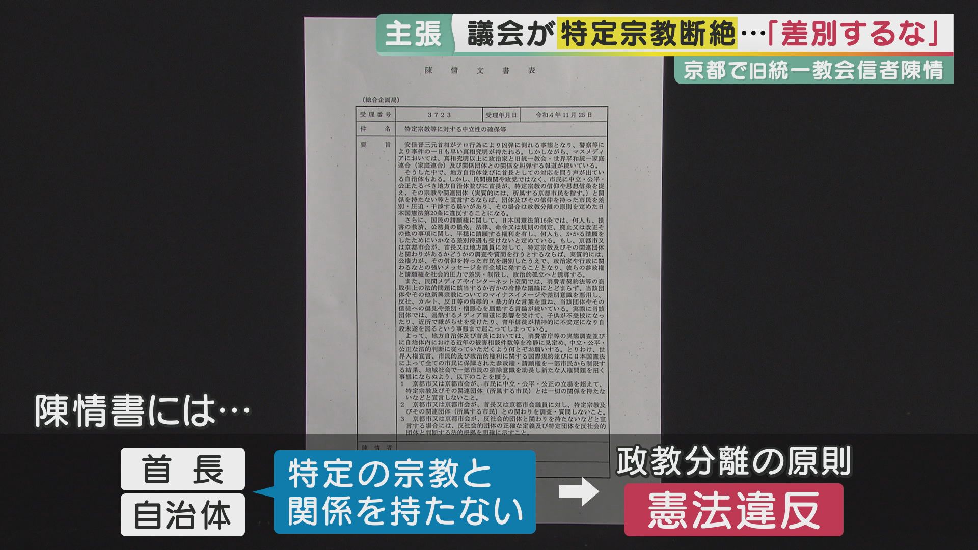 「差別するな」"旧統一教会"信者が議会に陳情書…全国でも関係者が同様の動き その“狙い”とは? 別議会なのに『同じ文面』も 紀藤弁護士「組織的関与。“解散命令”けん制か」 (写真ギャラリー 4/12) 記事にもどる