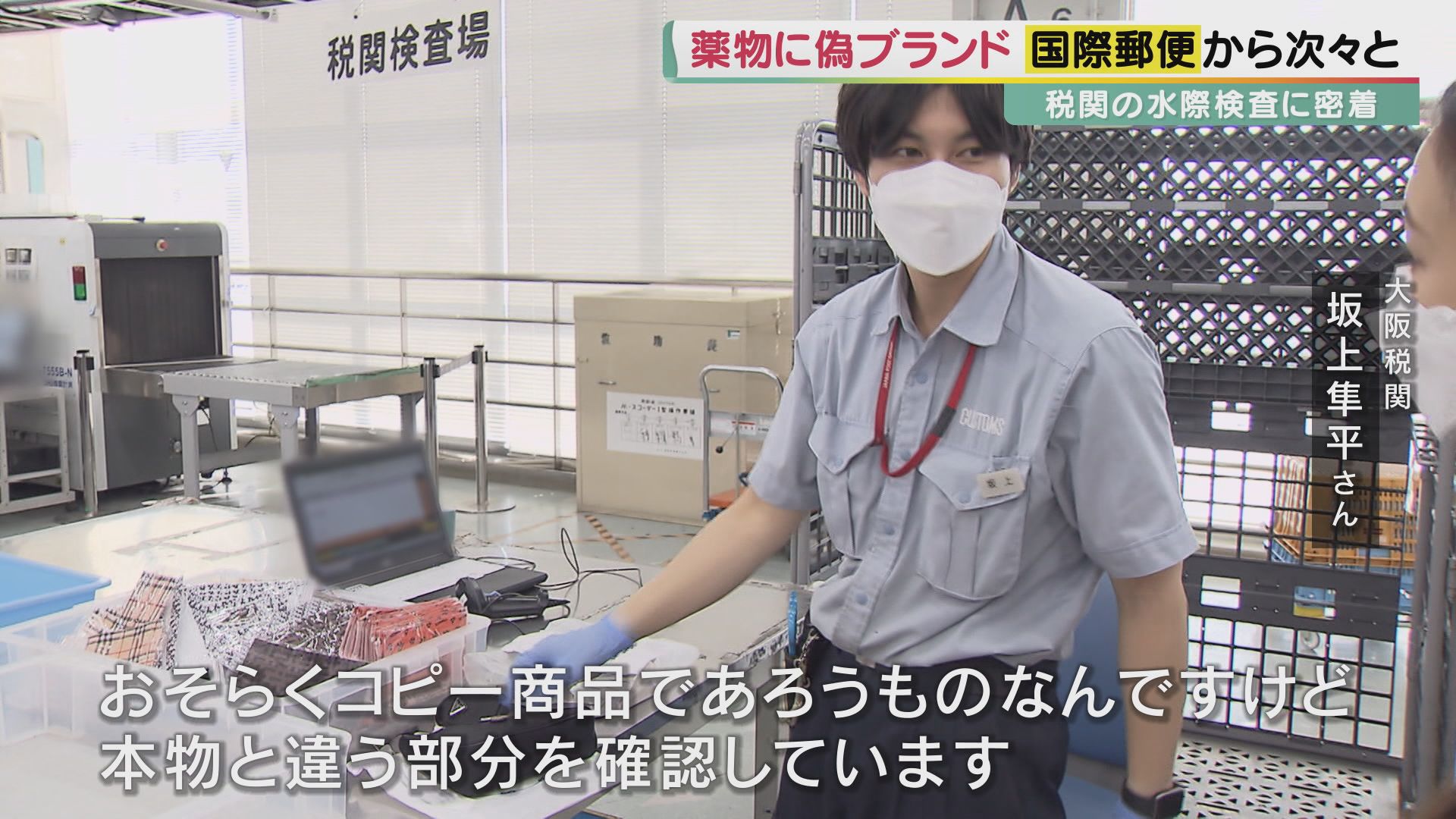 ここで働くのは大阪税関の職員たち。届く荷物は1日に1万点以上。世界中からやってくる郵便物を点検し、違法薬物や偽ブランドなどの“社会悪”の流入をいかに防ぐか 目を光らせます。