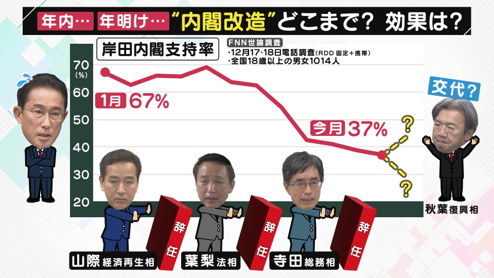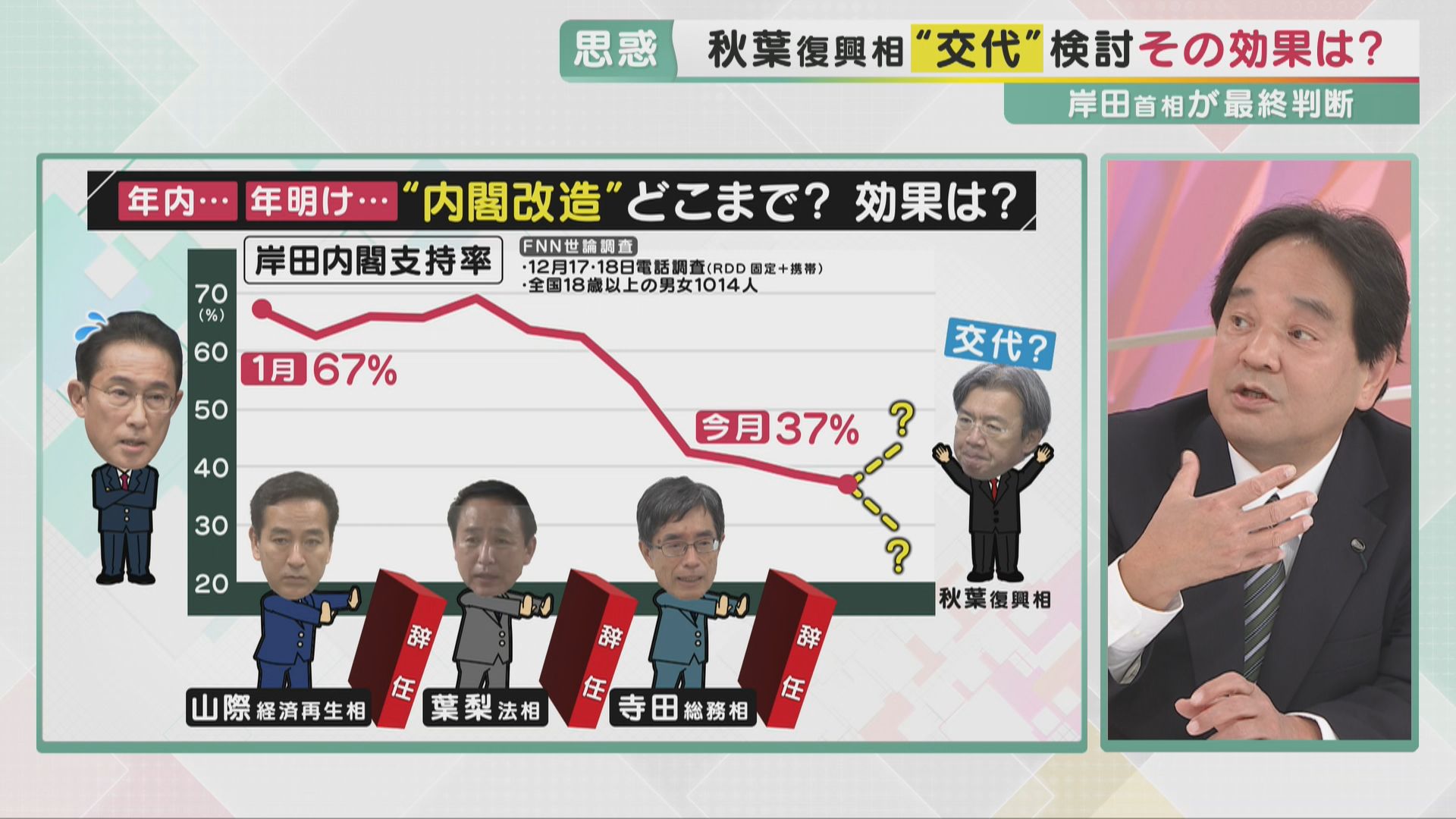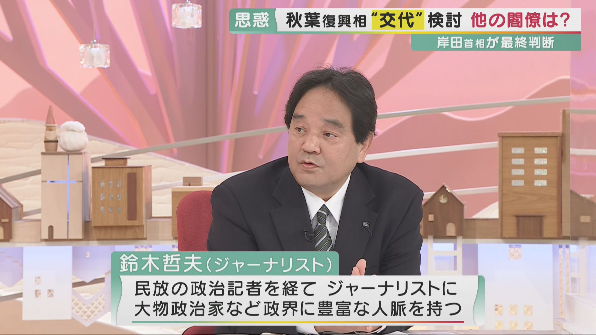 岸田内閣は秋の臨時国会の間に3人の大臣が交代しましたが、支持率の下落は止まらない状況です。そうした中で、さらに秋葉復興相の交代が浮上するという事態になりました。