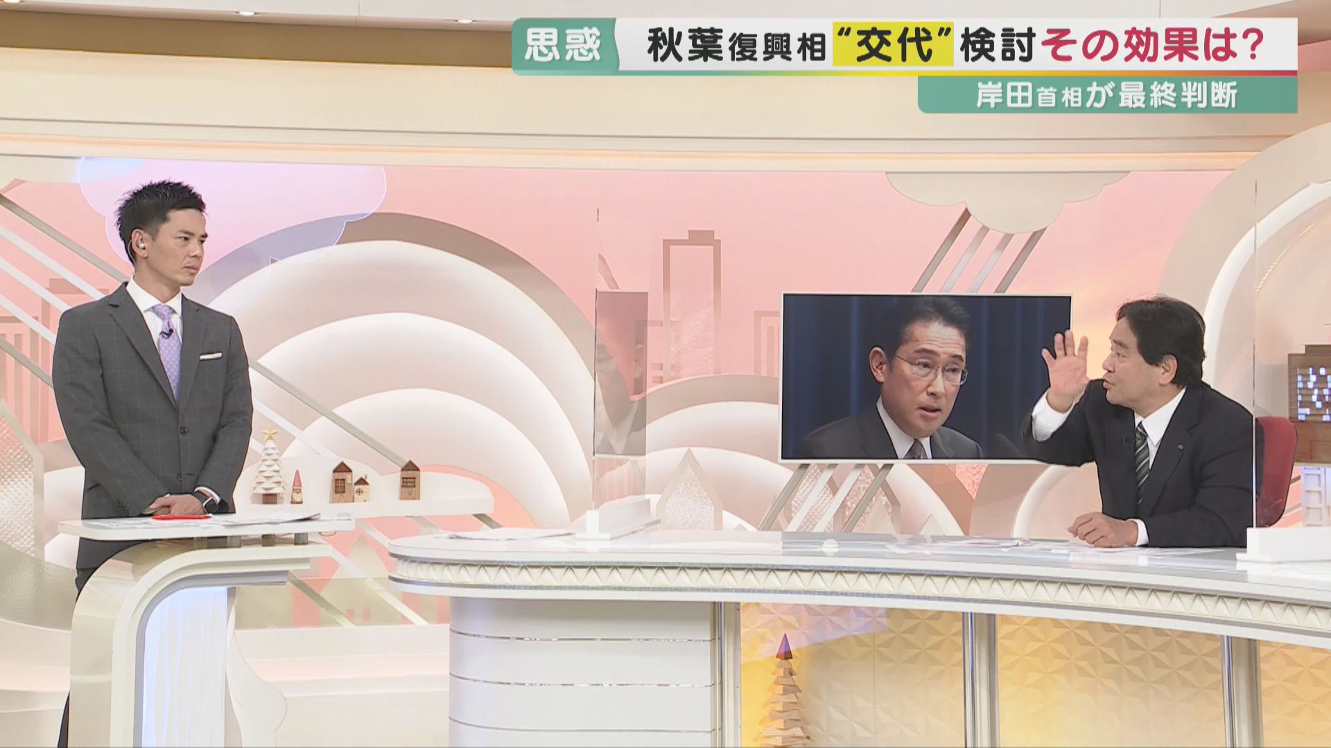 「秋葉さんをどのタイミングで交代させるかについては、ずっと話が出ています。年が明ければ国会が始まり、予算など大事なことがたくさんある中で、委員会が開かれるたびに秋葉復興相の問題が出てきて話が止まってしまうと。だから国会が始まる前の今、年が明けてお正月で、このタイミングで交代させようと、『姑息な交代劇』ですね。そういうタイミングを狙っていたのは間違いない。年内か年明けに交代という流れになると思います」