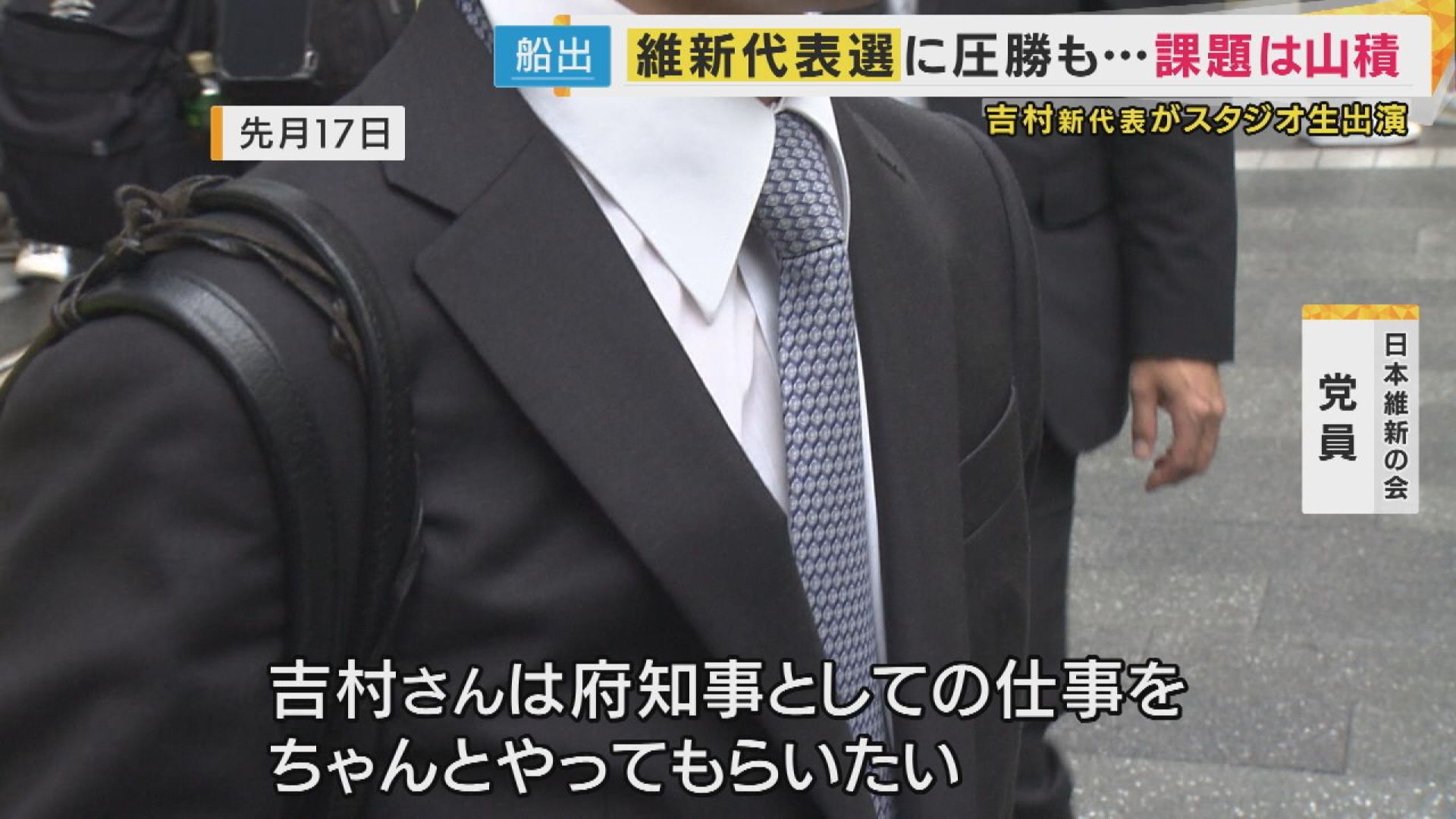 【日本維新の会・吉村洋文新代表】「なんとか持ち上げてやっていこうと思います」