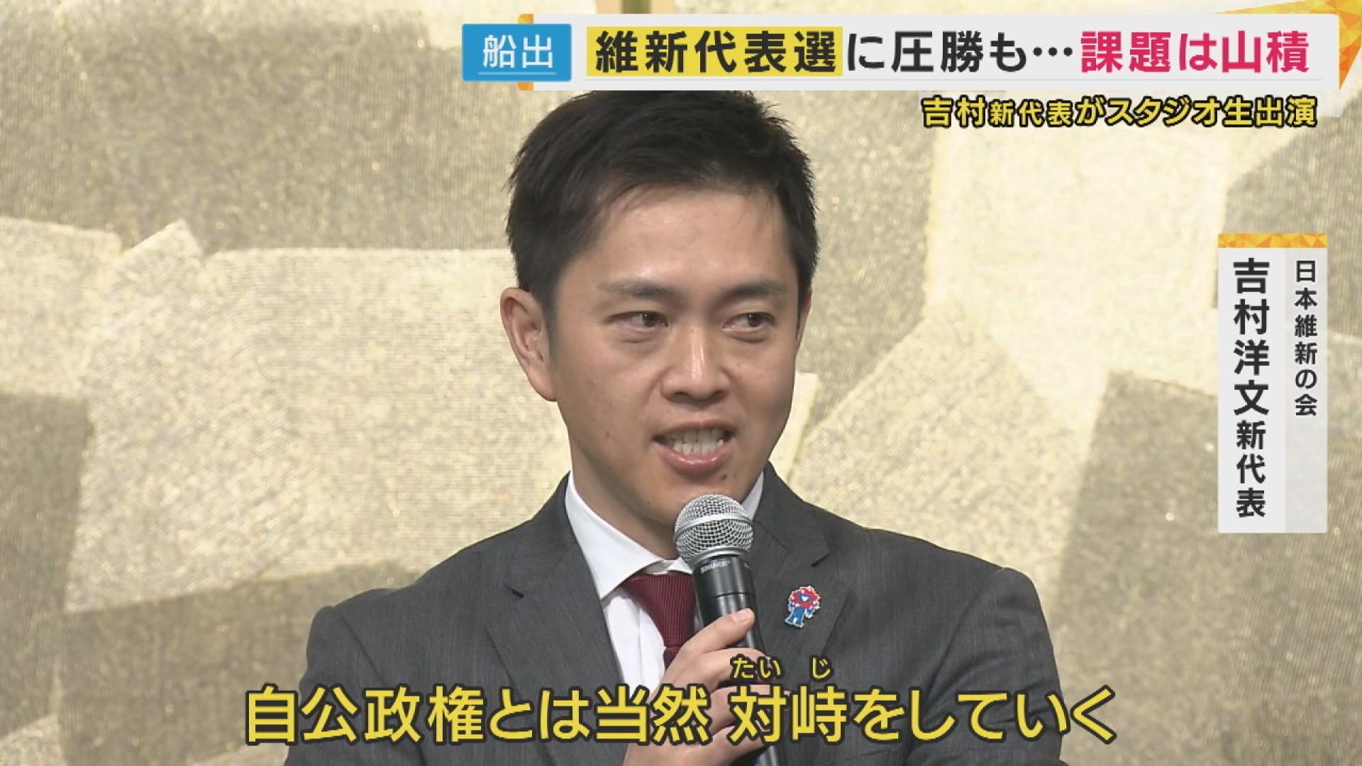 【日本維新の会・吉村洋文新代表】「自公政権とは当然、対峙をしていく。距離を置いて対峙をしてぶつかっていくと。自民党の与党過半数割れを目指すべきだと思います。その方が我々の公約を実現する可能性に近づくから」