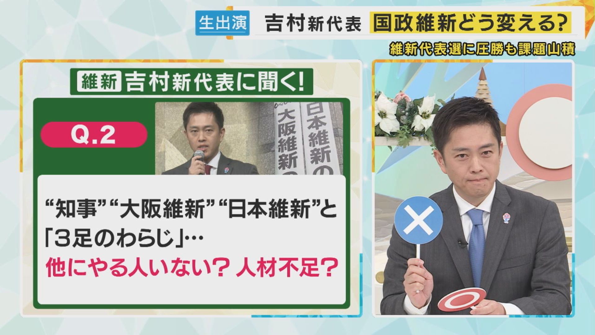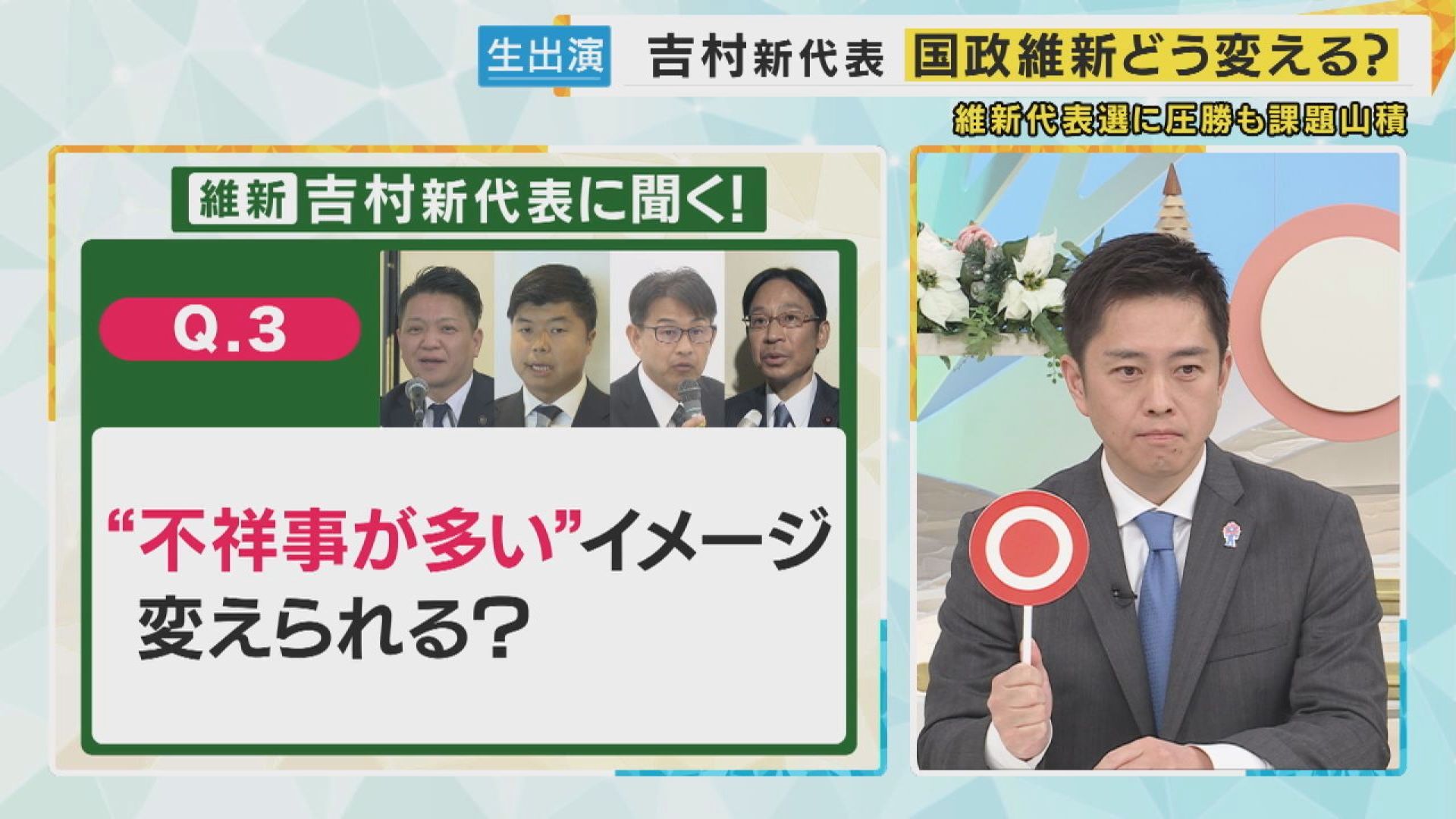 Q.維新派不祥事が多いイメージ。変えられる? これについて、吉村代表は〇を上げました。