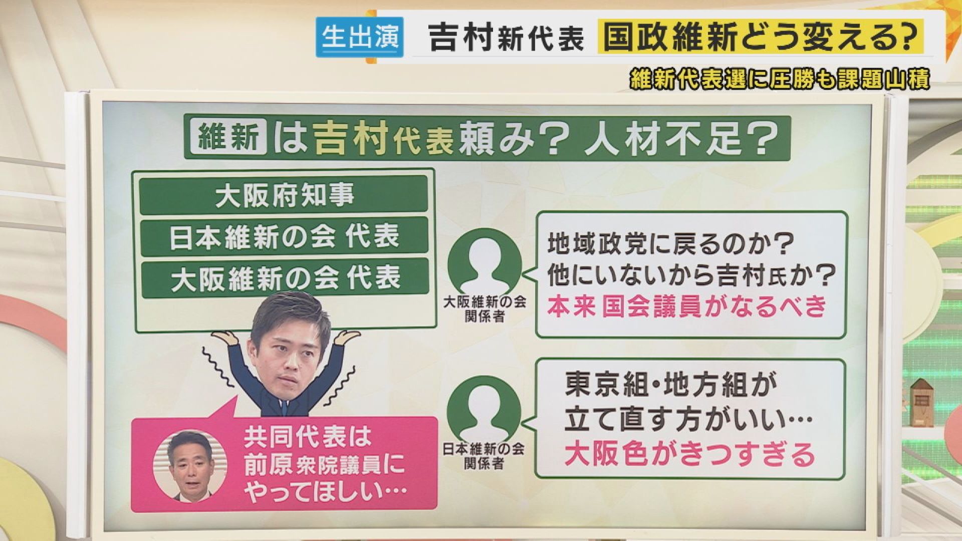 ■維新は吉村代表頼み?人材不足?