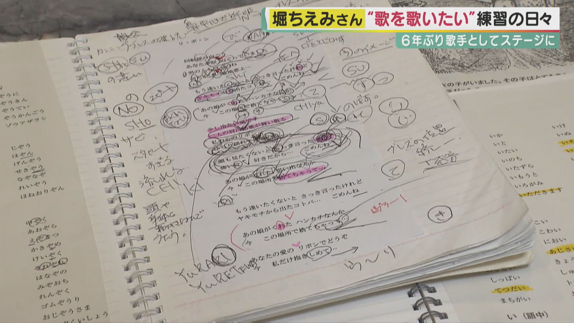 発音が上手くできない言葉は、何度も何度も繰り返し練習。ちえみさんのノートには、歌詞が見えなくなるほど発声のポイントが書き込まれています。