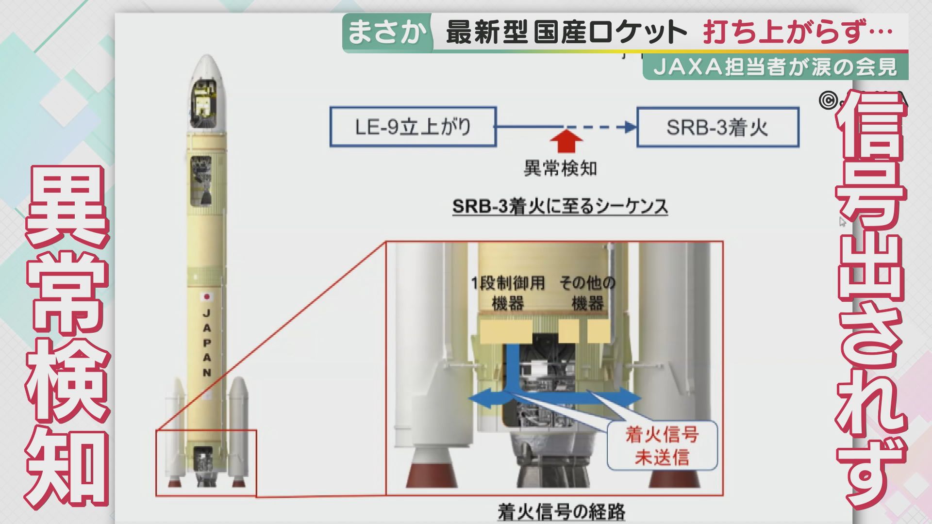 打ち上げ中止となった原因について、メインエンジンは問題なく作動したものの、その横に設置されている補助ロケットに、着火する過程で異常が検知され、信号が送られなかったということです。