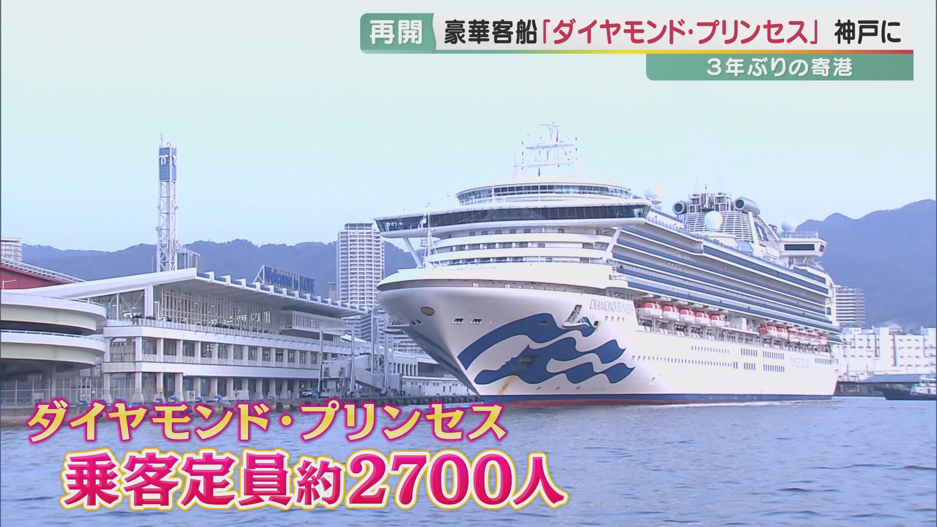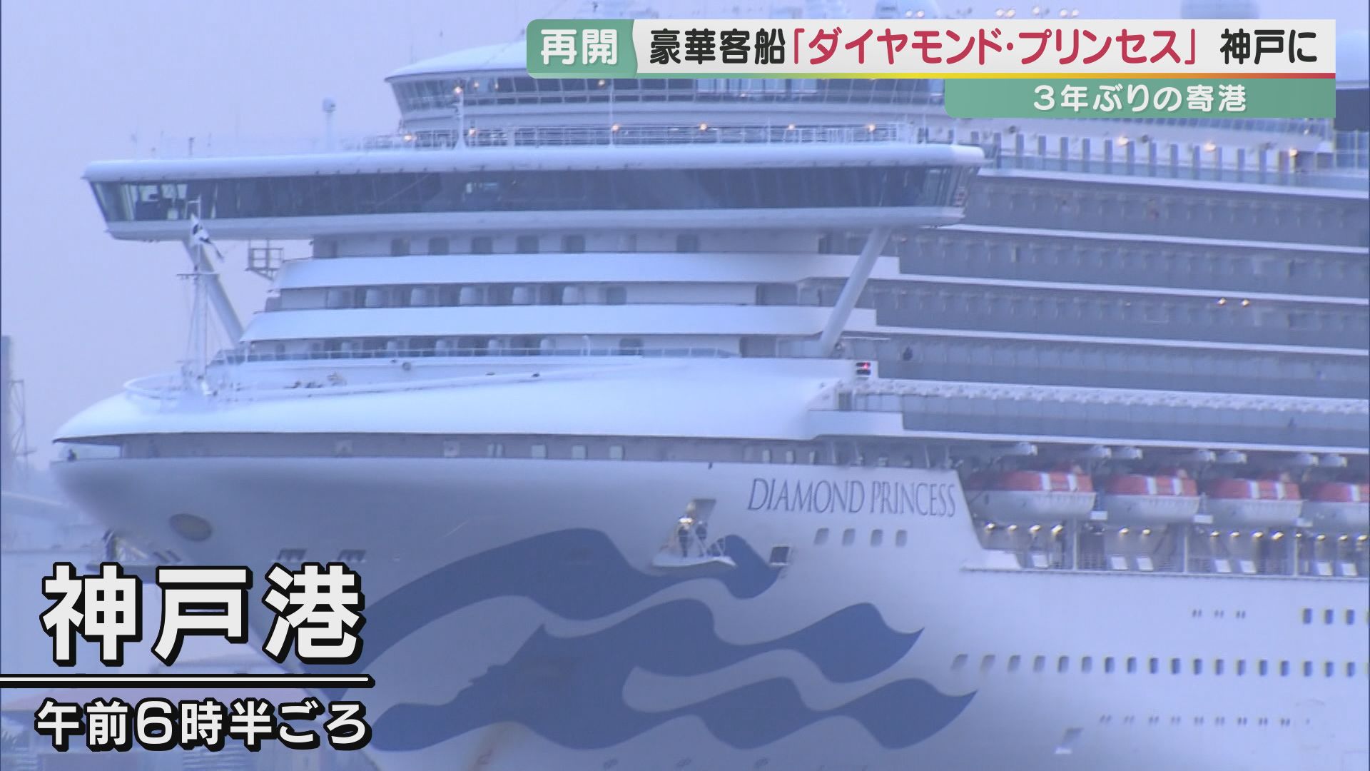8日午前6時半ごろ、放水での歓迎を受けて神戸港にやってきた豪華客船。3年前、新型コロナウイルスの集団感染が発生した「ダイヤモンド・プリンセス」です。2月にアメリカを出発し、約3年ぶりの日本への寄港となりました。