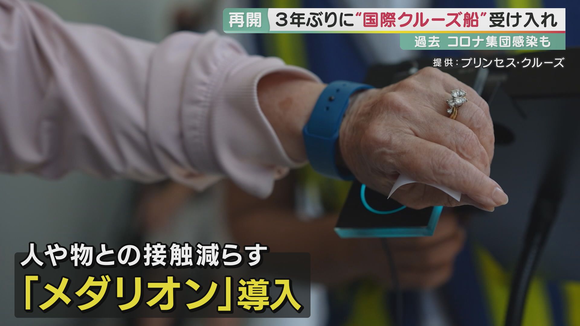 3年ぶりに日本にやってきた「ダイヤモンド・プリンセス」は、人や物との接触を減らす「メダリオン」という新たなサービスを導入しています。メダル型の端末にワクチン接種や陰性証明などの情報を登録しておけば、スムーズにチェックインでき、密集を避けられます。また、船内での飲食のオーダーや客室のドアの解錠なども非接触ででき、感染の不安が軽減できます。