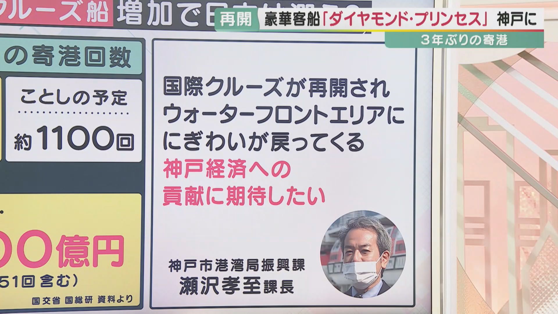 神戸市の担当者、港湾局振興課の瀬沢孝至課長によると、「国際クルーズが再開され、神戸のウォーターフロントエリアに、にぎわいが戻ってくる。神戸経済への貢献に期待したい」とのことです。