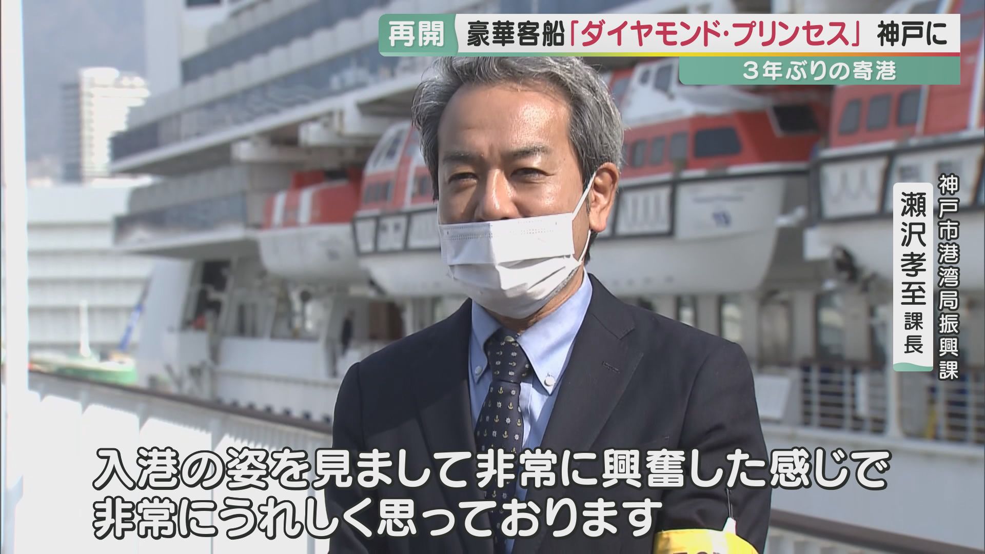 「入港の姿を見まして、非常に興奮した感じで、非常にうれしく思っております」