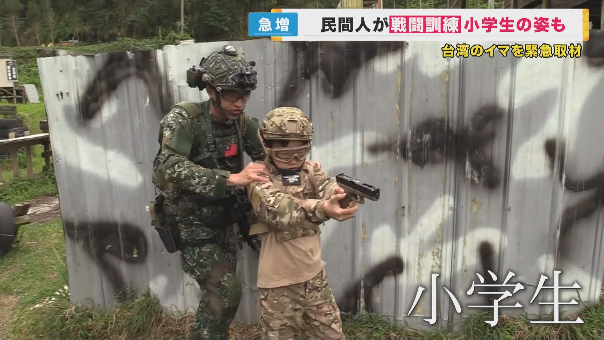 小学生を連れてきた父親は職業軍人で、「台湾を守る教育を小さいうちから始めようと思った」と話します。