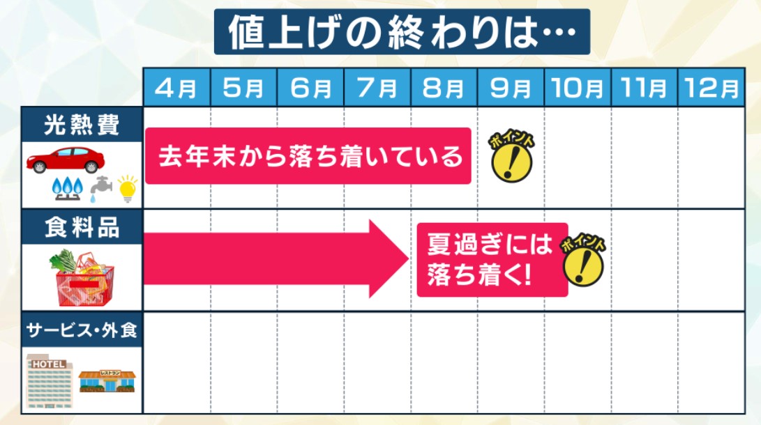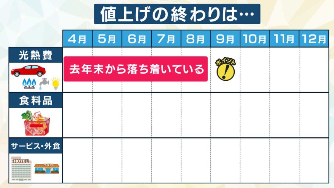 4月以降も、食料品をあわせて9000品目が値上げ予定ということです。そんな中で、値上げラッシュの終わりが見えてきている…、それはどういうことなのでしょうか?
