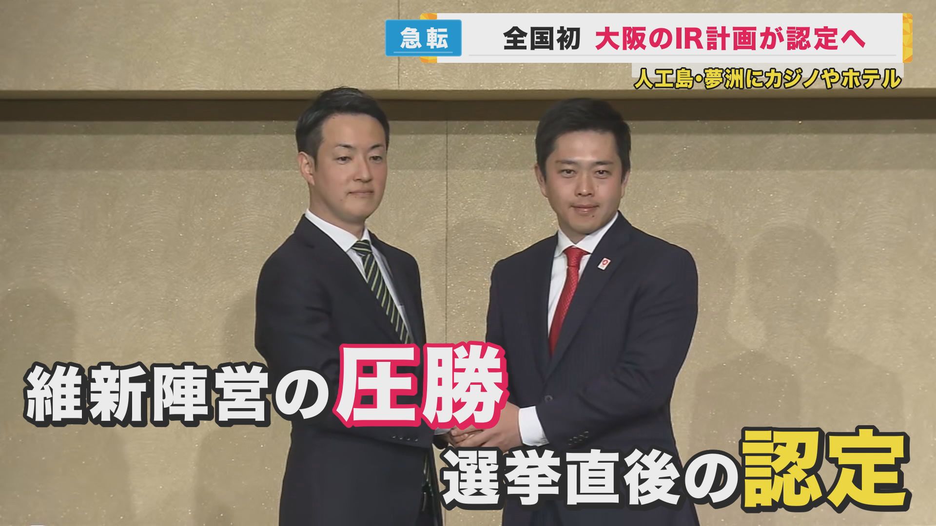 年が明けても認定は出ず。そんな中で始まったのが、IRが最大の争点となった大阪府知事・市長のW選です。計画を推進する維新陣営がW選に圧勝。選挙から一週間もたたない中での、今回の認定でした。