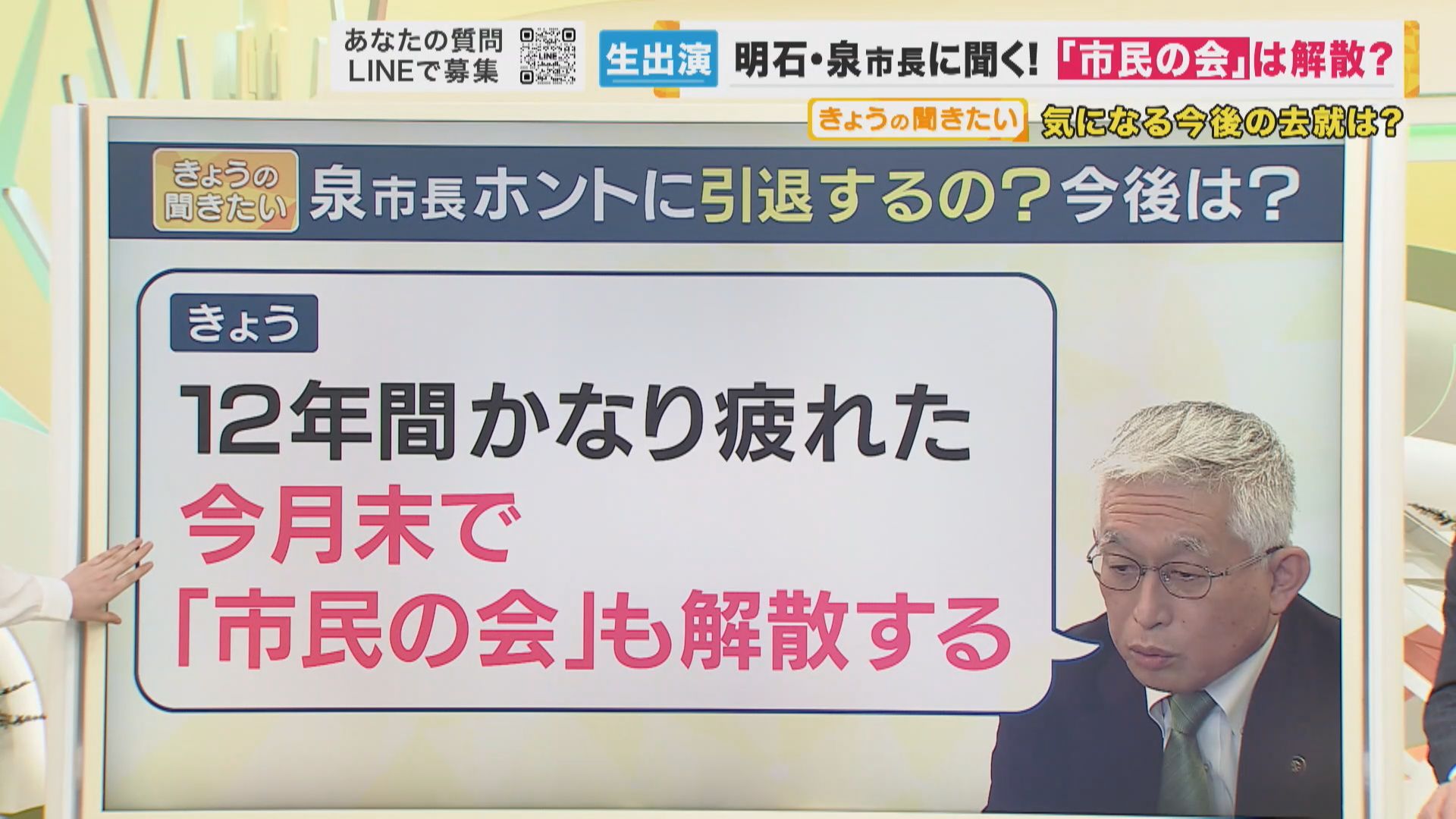 こういう話も、泉市長はされました。24日、明石市役所で「12年間かなり疲れた。今月末で『市民の会』も解散する」こう話されました。