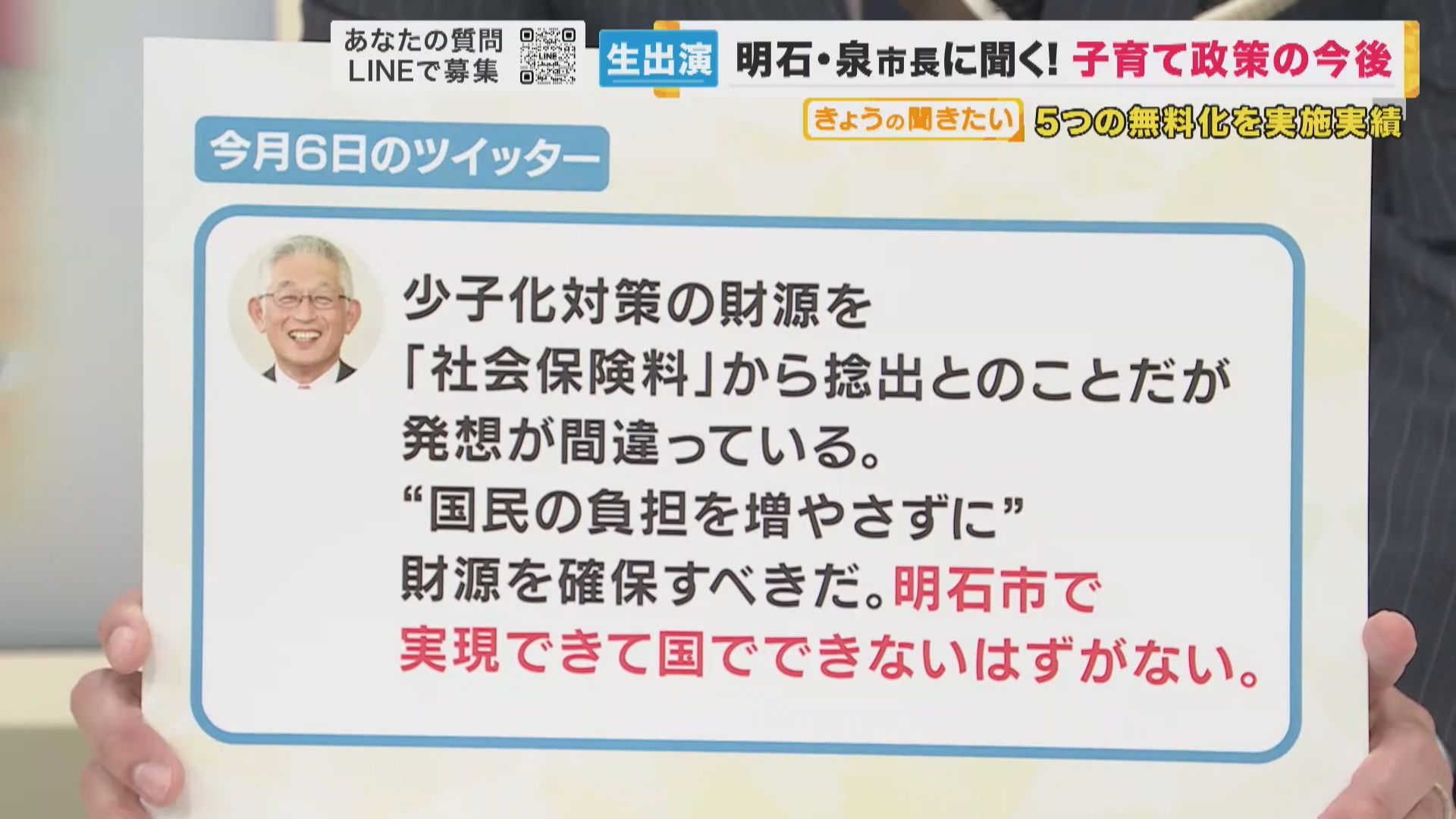 これらは明石市だからできるのか?それとも国でもできるのか?この点について泉さんは「少子化対策の財源を社会保険料から捻出とのことだが、発想が間違っている。明石市で実現できて国でできないはずがない」とツイートされています。